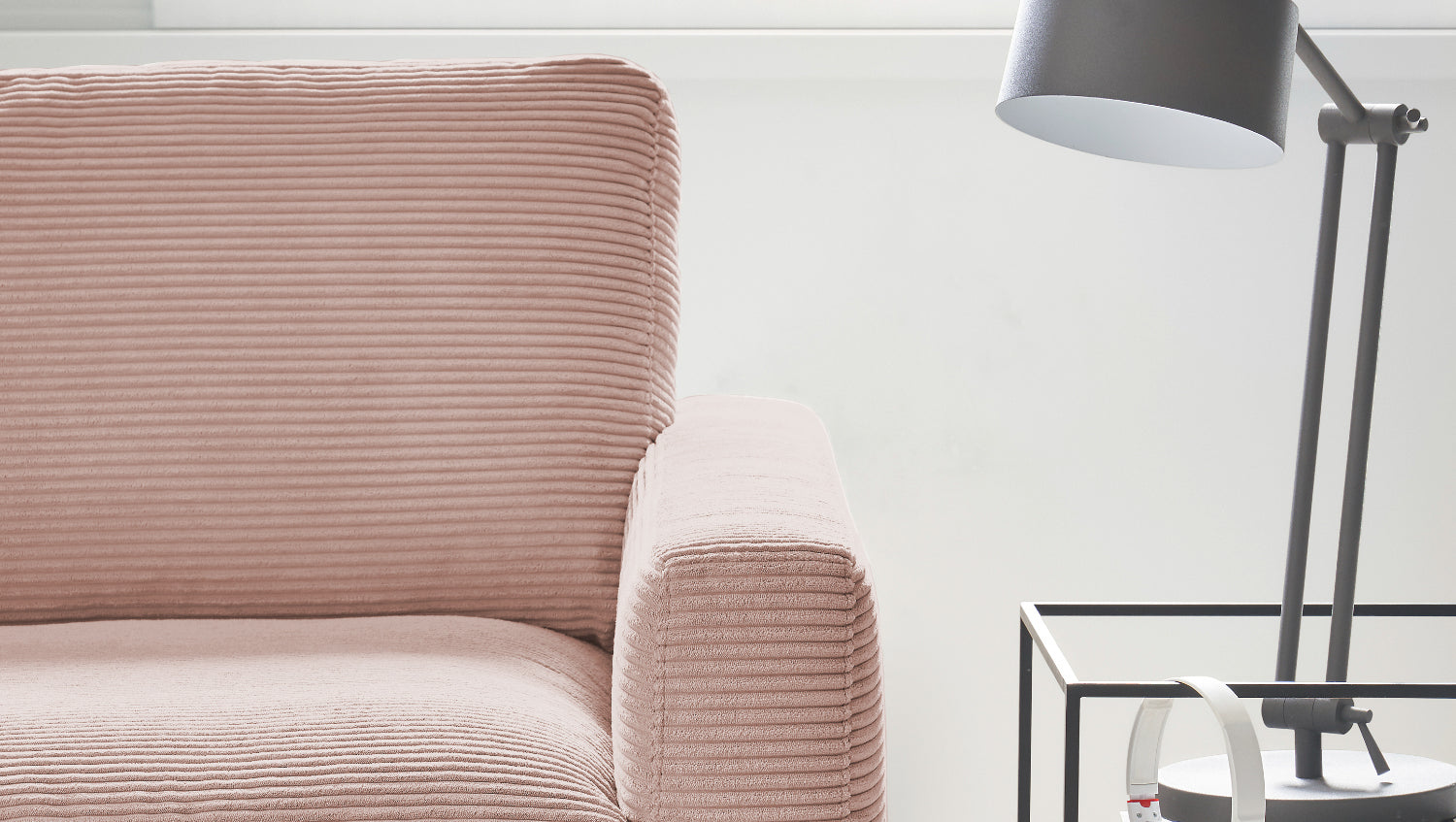 KAWOLA sofá esquinero CARA sofá pana rosa