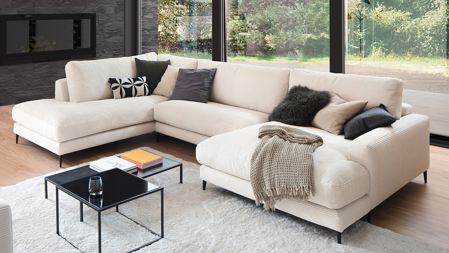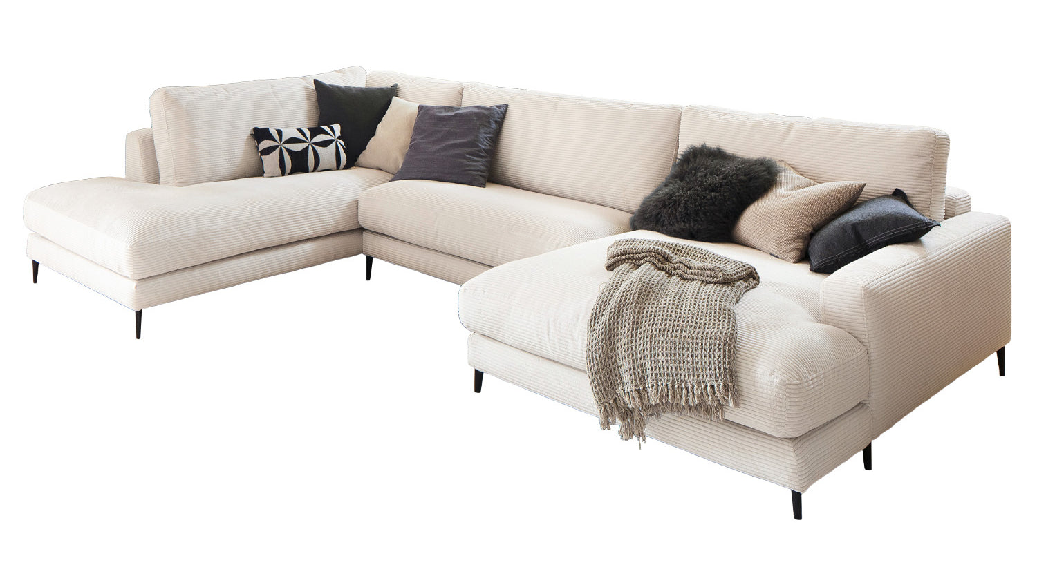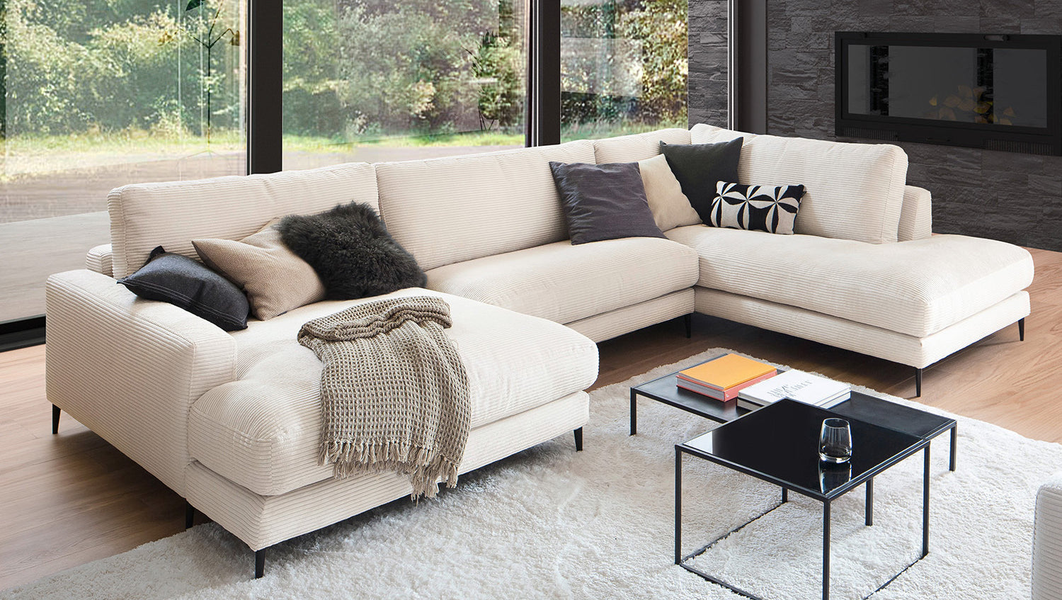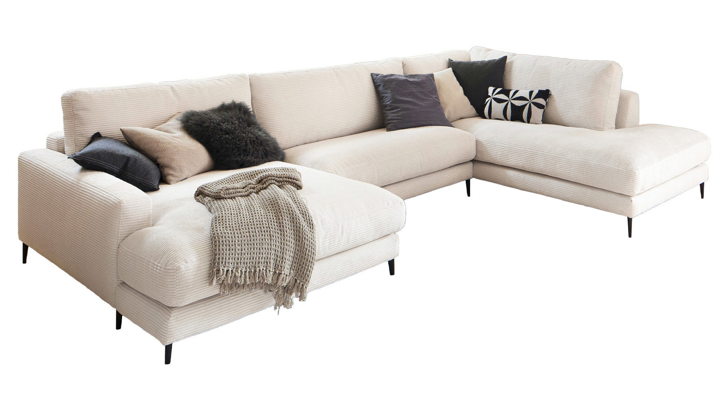 KAWOLA Sofá en forma de U CARA Pana blanco crema