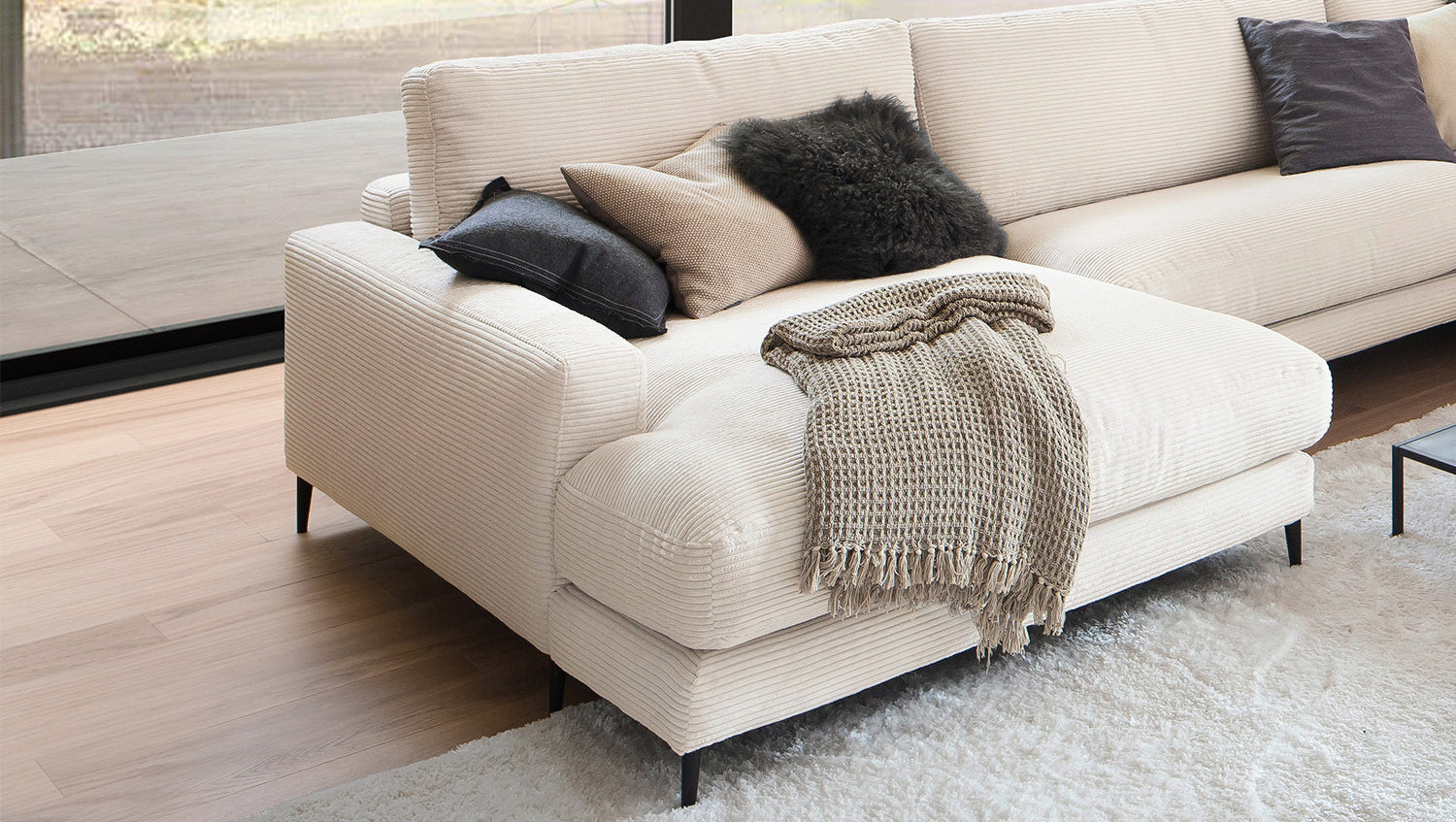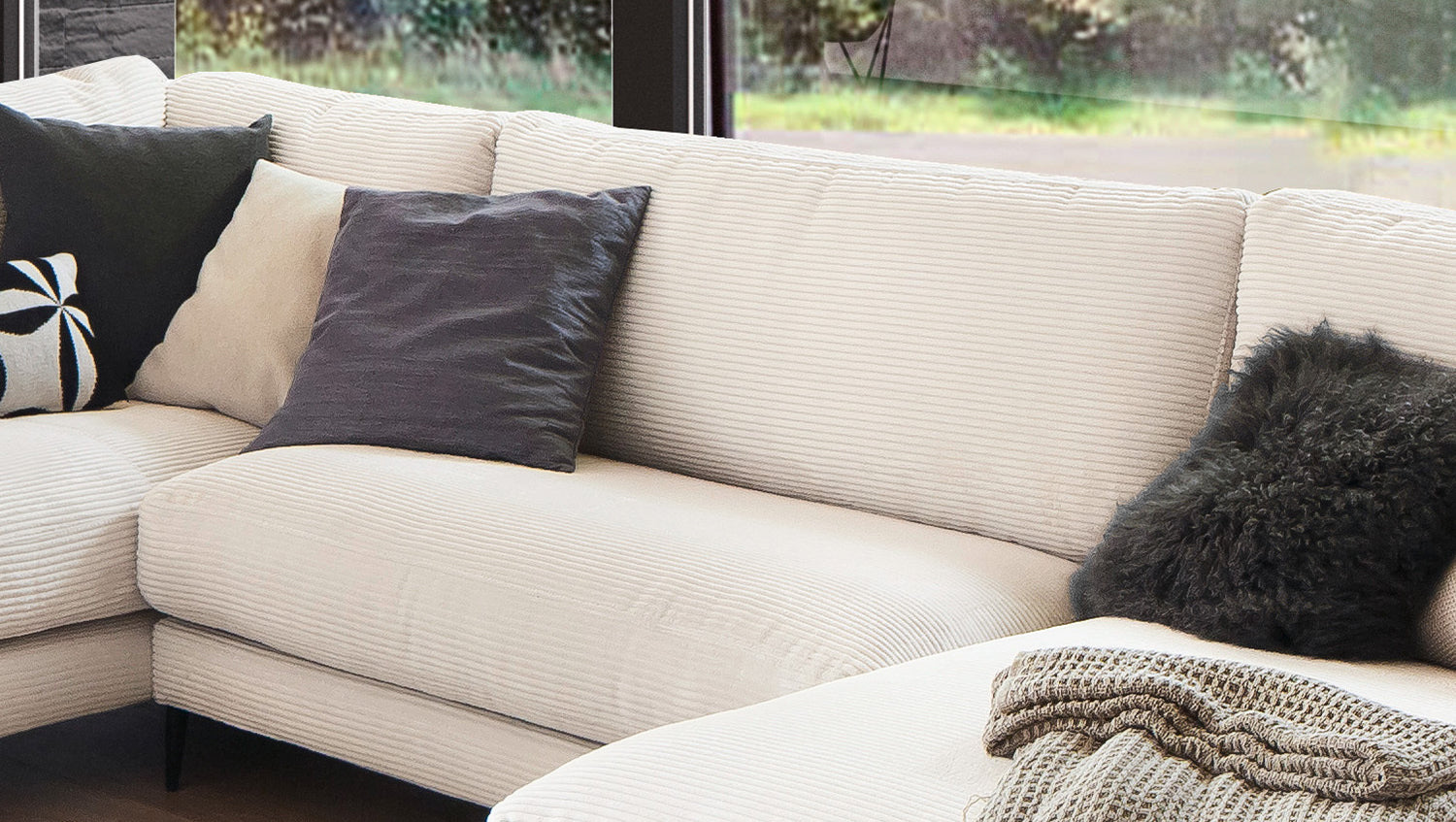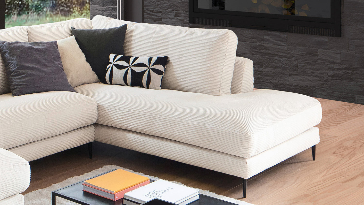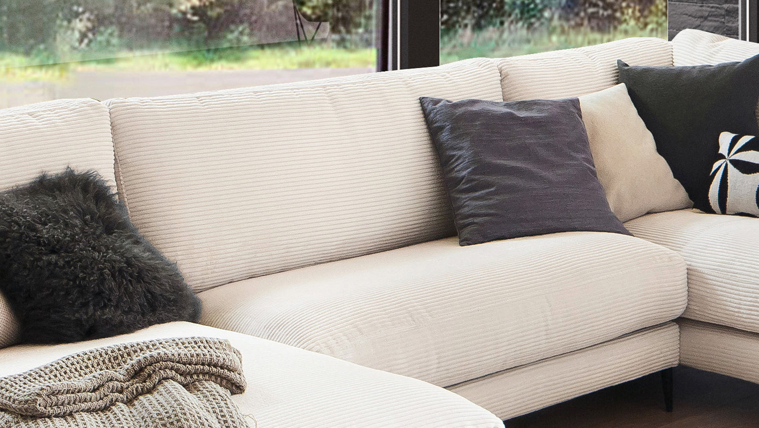 El Sofá en forma de U KAWOLA CARA combina el diseño clásico con la practicidad moderna y se integra a la perfección en cualquier interior. Sus formas suaves y la moderna funda de tela de pana confieren al sofá una elegancia atemporal. La compleja tapicería de 3 niveles garantiza la máxima comodidad de asiento y se adapta a la forma del cuerpo gracias a su estructura desenfadada. El sofá también está equipado con cojines de cámara de alta calidad. Para evitar que el material de relleno se comprima, estos Cojines respaldo deben sacudirse después de cada uso. Sea cual sea la ocasión, ¡todo el mundo encontrará un lugar para relajarse en el sofá CARA!
