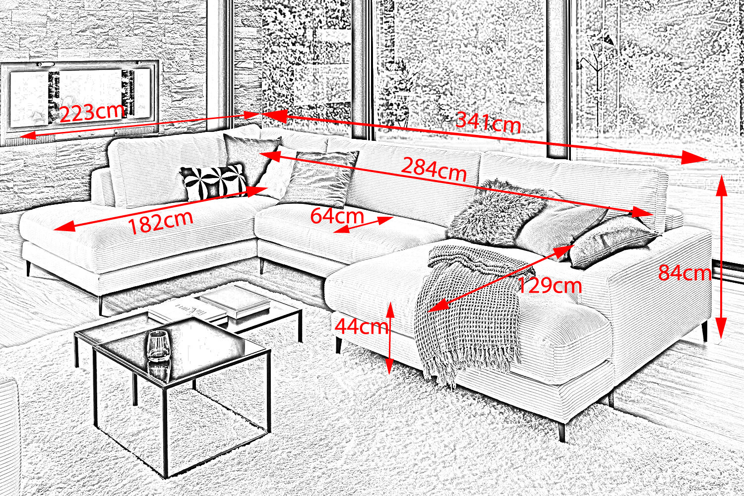 El Sofá en forma de U KAWOLA CARA combina el diseño clásico con la practicidad moderna y se integra a la perfección en cualquier interior. Sus formas suaves y la moderna funda de tela de pana confieren al sofá una elegancia atemporal. La compleja tapicería de 3 niveles garantiza la máxima comodidad de asiento y se adapta a la forma del cuerpo gracias a su estructura desenfadada. El sofá también está equipado con cojines de cámara de alta calidad. Para evitar que el material de relleno se comprima, estos Cojines respaldo deben sacudirse después de cada uso. Sea cual sea la ocasión, ¡todo el mundo encontrará un lugar para relajarse en el sofá CARA!
