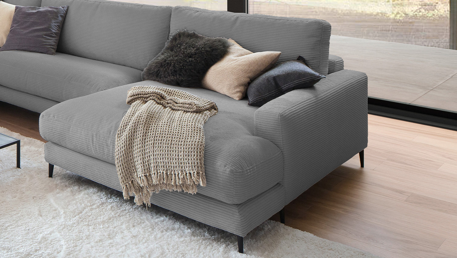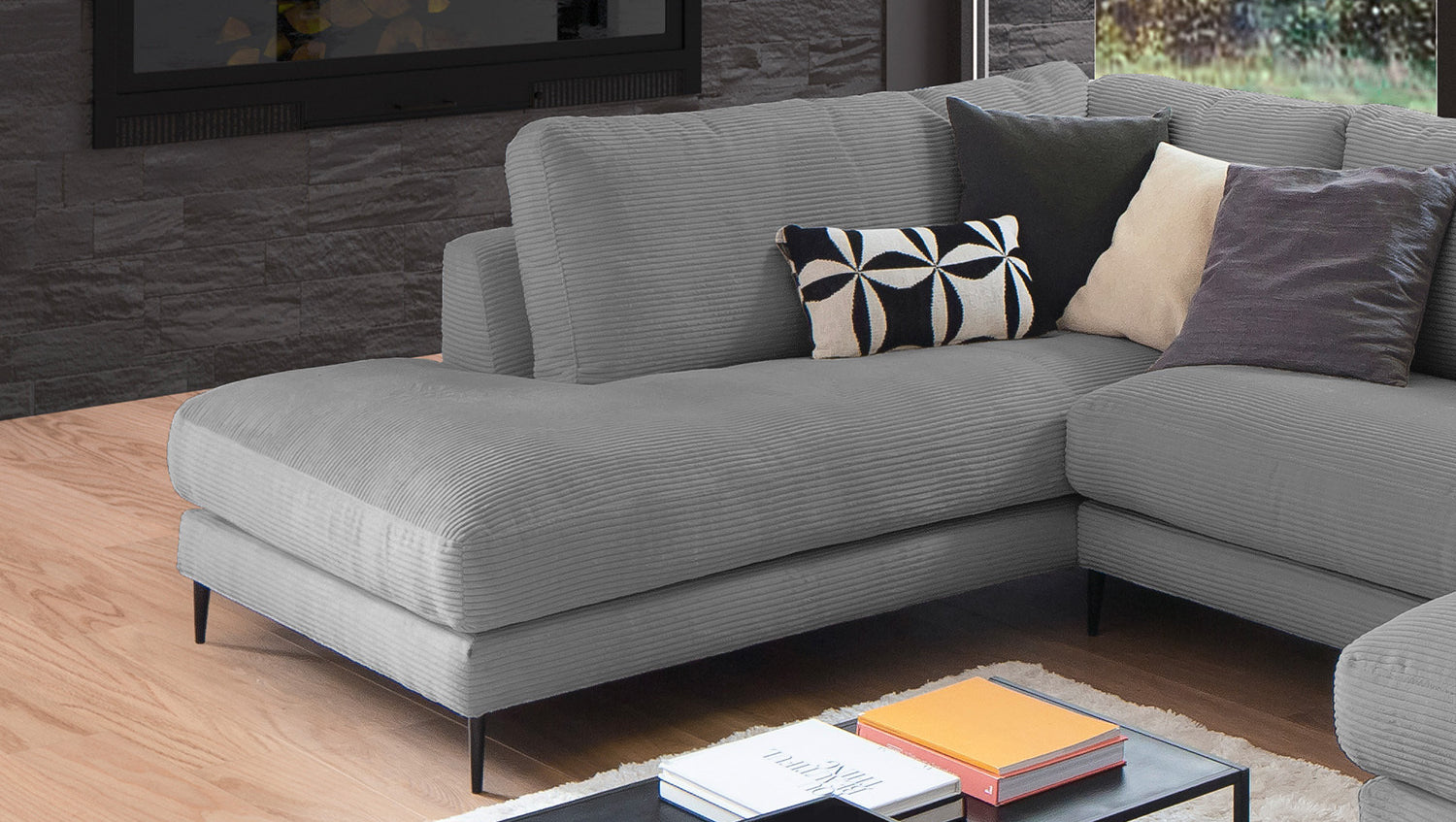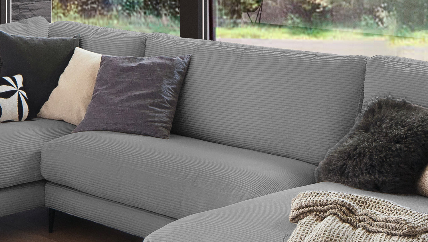 El Sofá en forma de U KAWOLA CARA combina el diseño clásico con la practicidad moderna y se integra a la perfección en cualquier interior. Sus formas suaves y la moderna funda de tela de pana confieren al sofá una elegancia atemporal. La compleja tapicería de 3 niveles garantiza la máxima comodidad de asiento y se adapta a la forma del cuerpo gracias a su estructura desenfadada. El sofá también está equipado con cojines de cámara de alta calidad. Para evitar que el material de relleno se comprima, estos Cojines respaldo deben sacudirse después de cada uso. Sea cual sea la ocasión, ¡todo el mundo encontrará un lugar para relajarse en el sofá CARA!