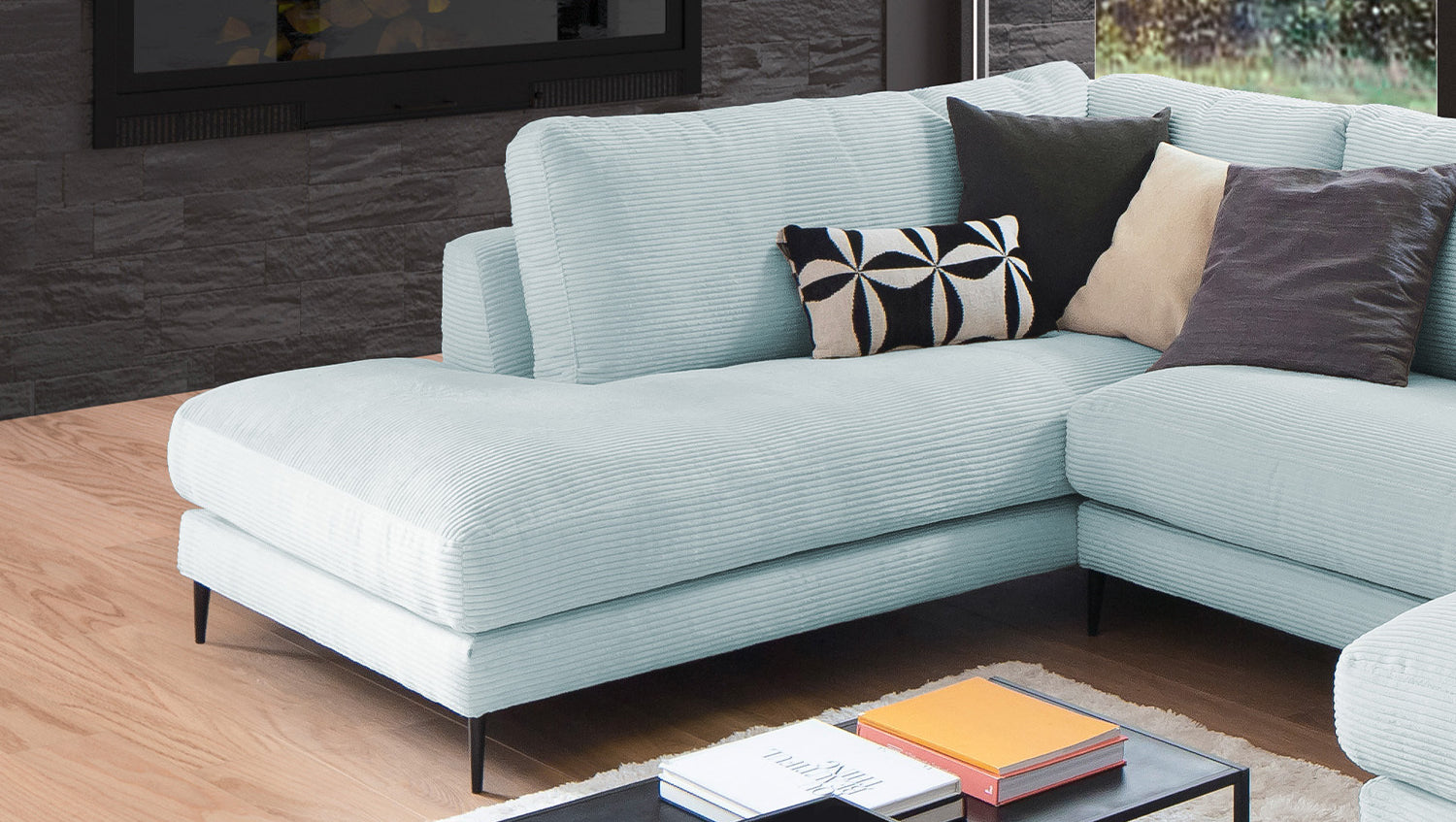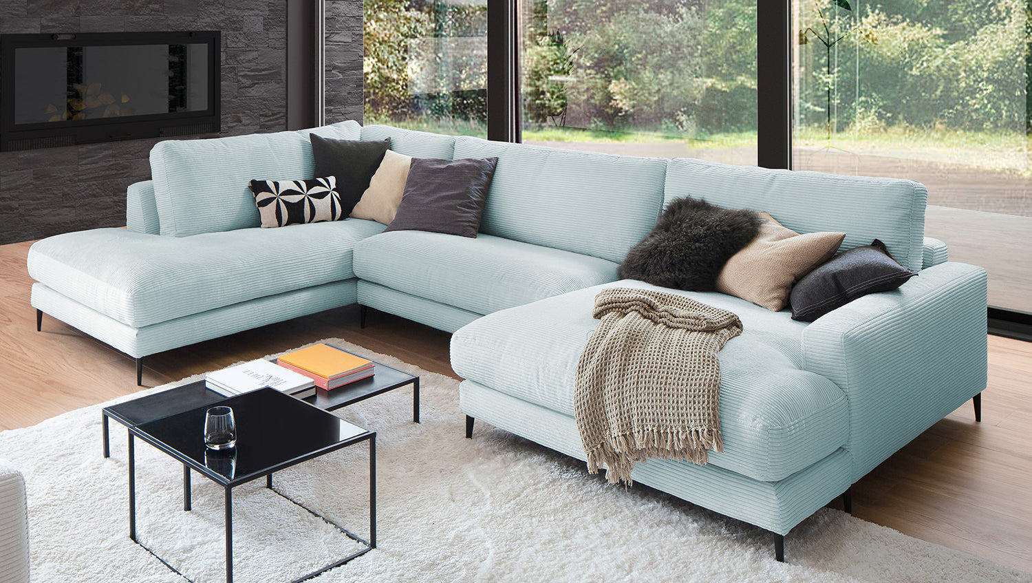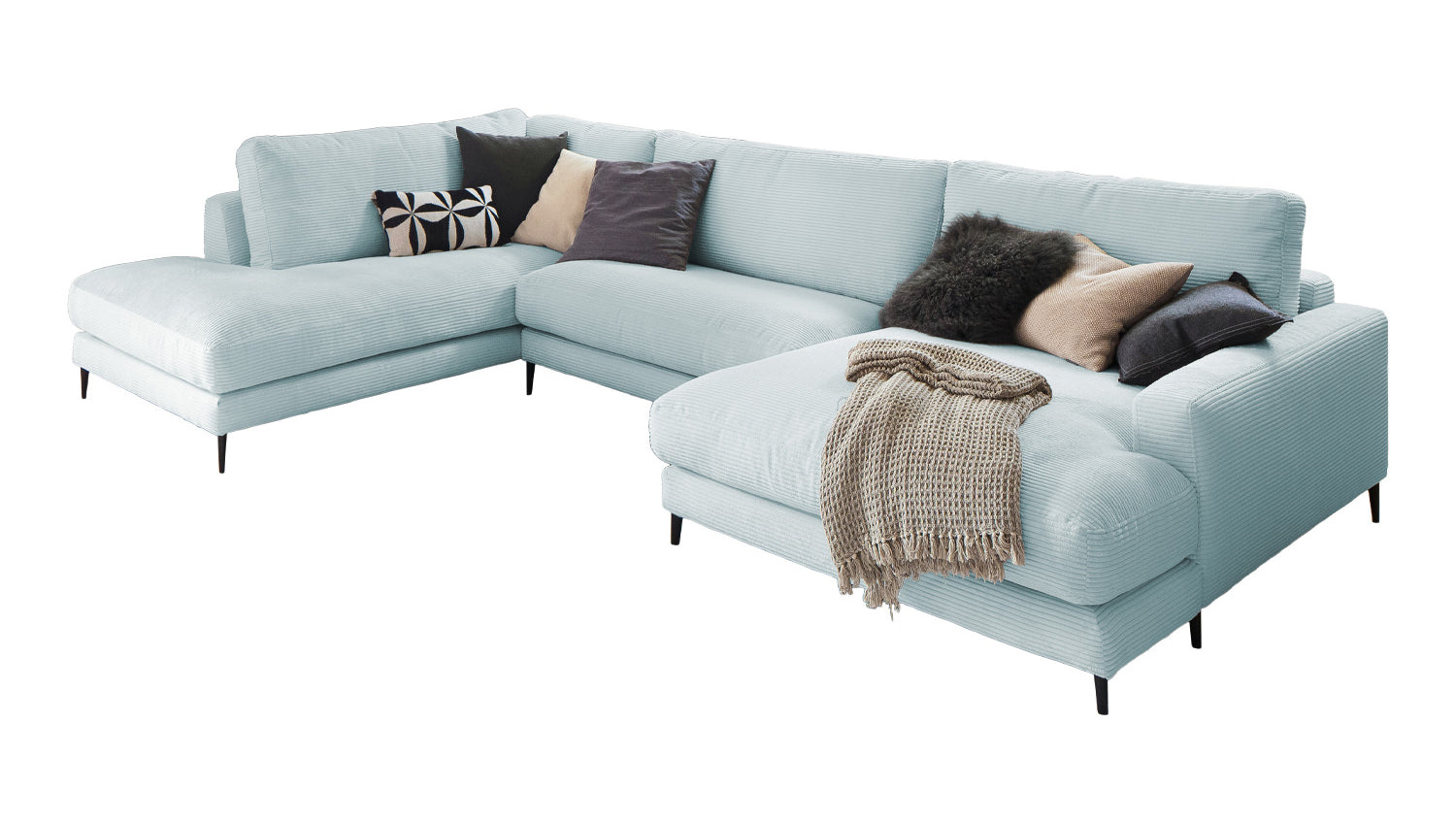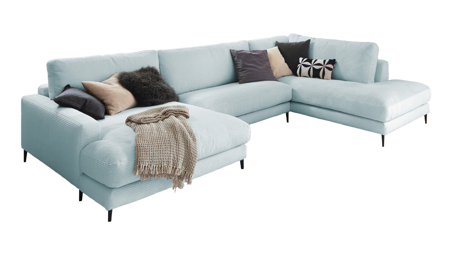 KAWOLA Sofá en forma de U CARA Pana azul claro