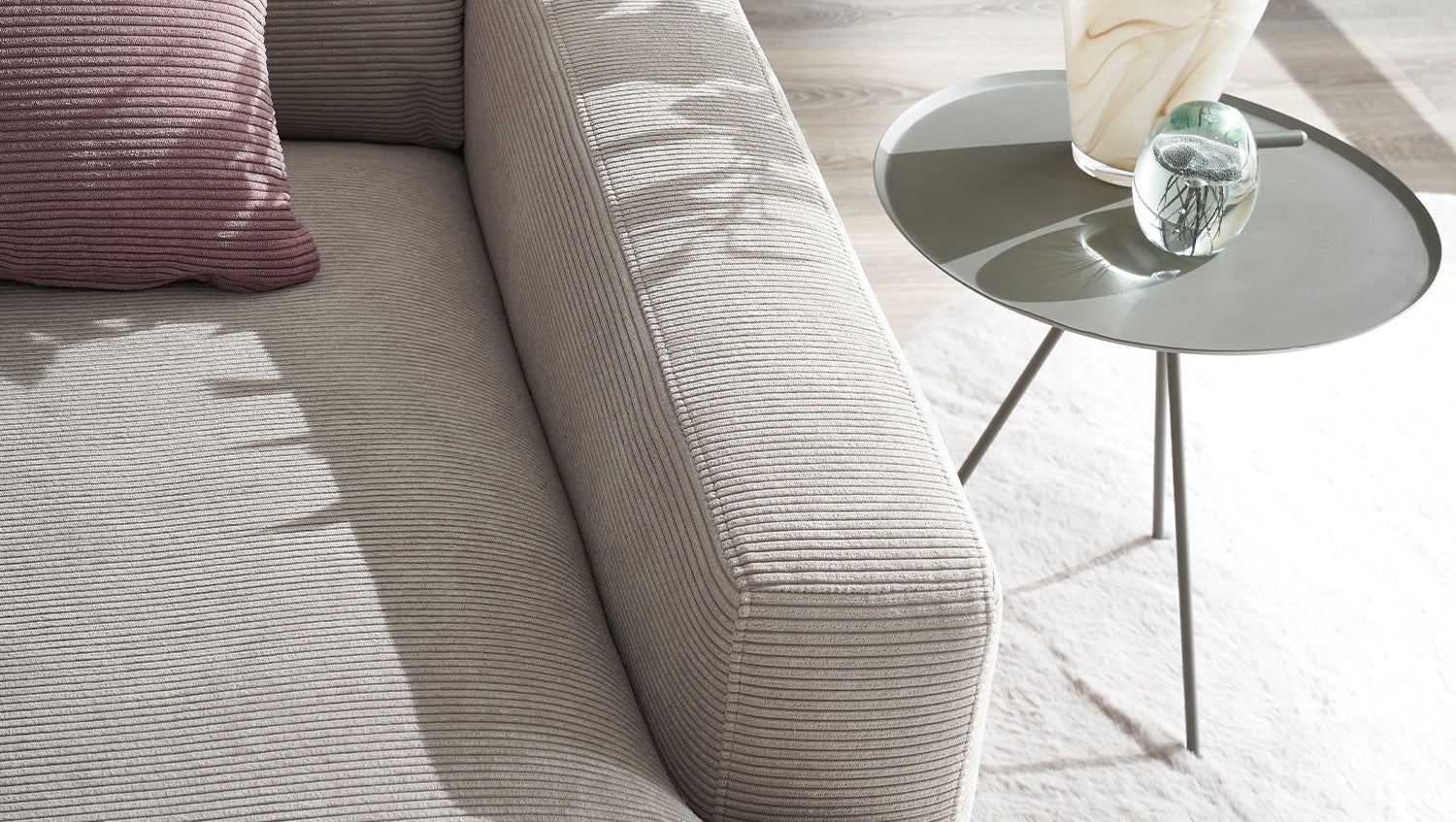 El asiento largo KAWOLA CARA combina el diseño clásico con la practicidad moderna y se integra a la perfección en cualquier interior. Sus formas suaves y la funda de Pana fina de moda confieren al asiento largo una elegancia atemporal. El tapizado se adapta a la forma del cuerpo; las impresiones del asiento y las ondulaciones de las fundas son típicas del producto. El asiento consta de una base de muelles con muelles ondulados de acero de elasticidad permanente y una funda superior, así como cojines de asiento sueltos de espuma de poliuretano. El asiento y el respaldo están tapizados con un relleno de alta calidad que contiene una mezcla de plumas. Para evitar que el material de relleno se comprima, los Cojines respaldo deben sacudirse después de su uso. Sea cual sea la ocasión, todos encontrarán un lugar para relajarse en el asiento largo CARA.