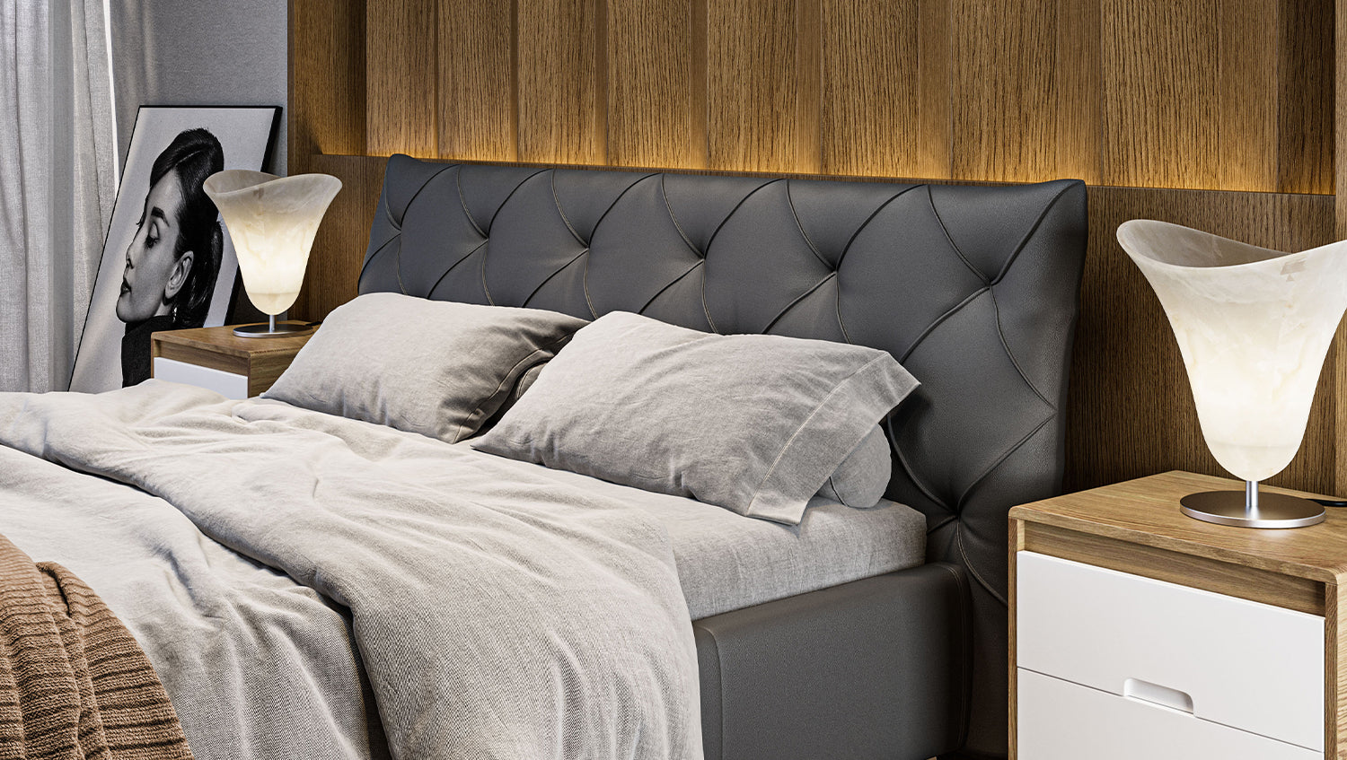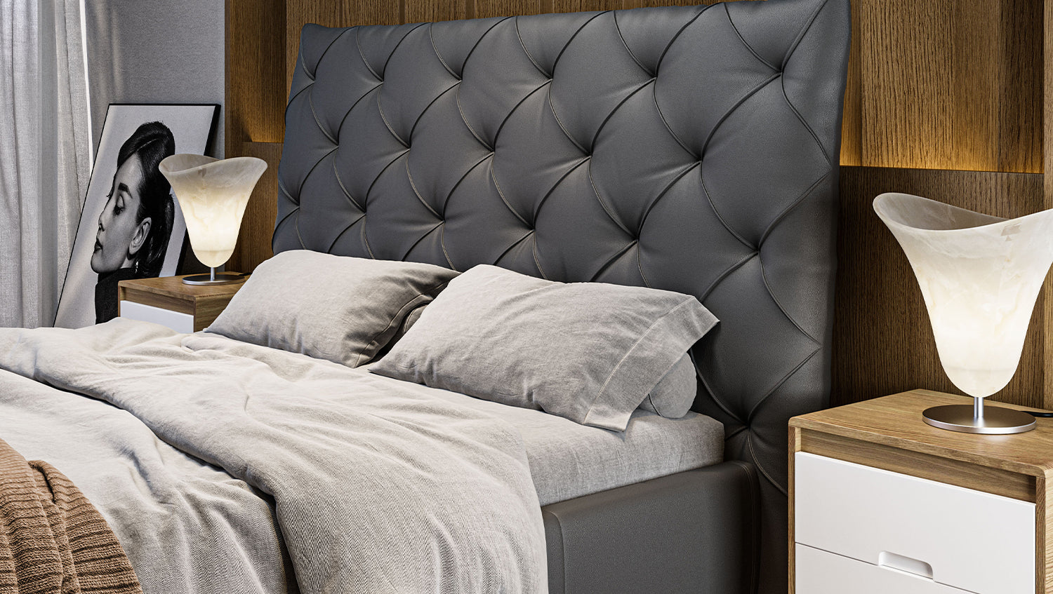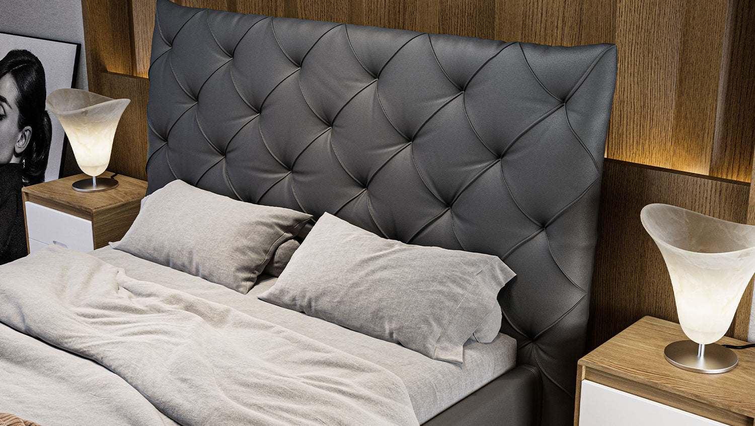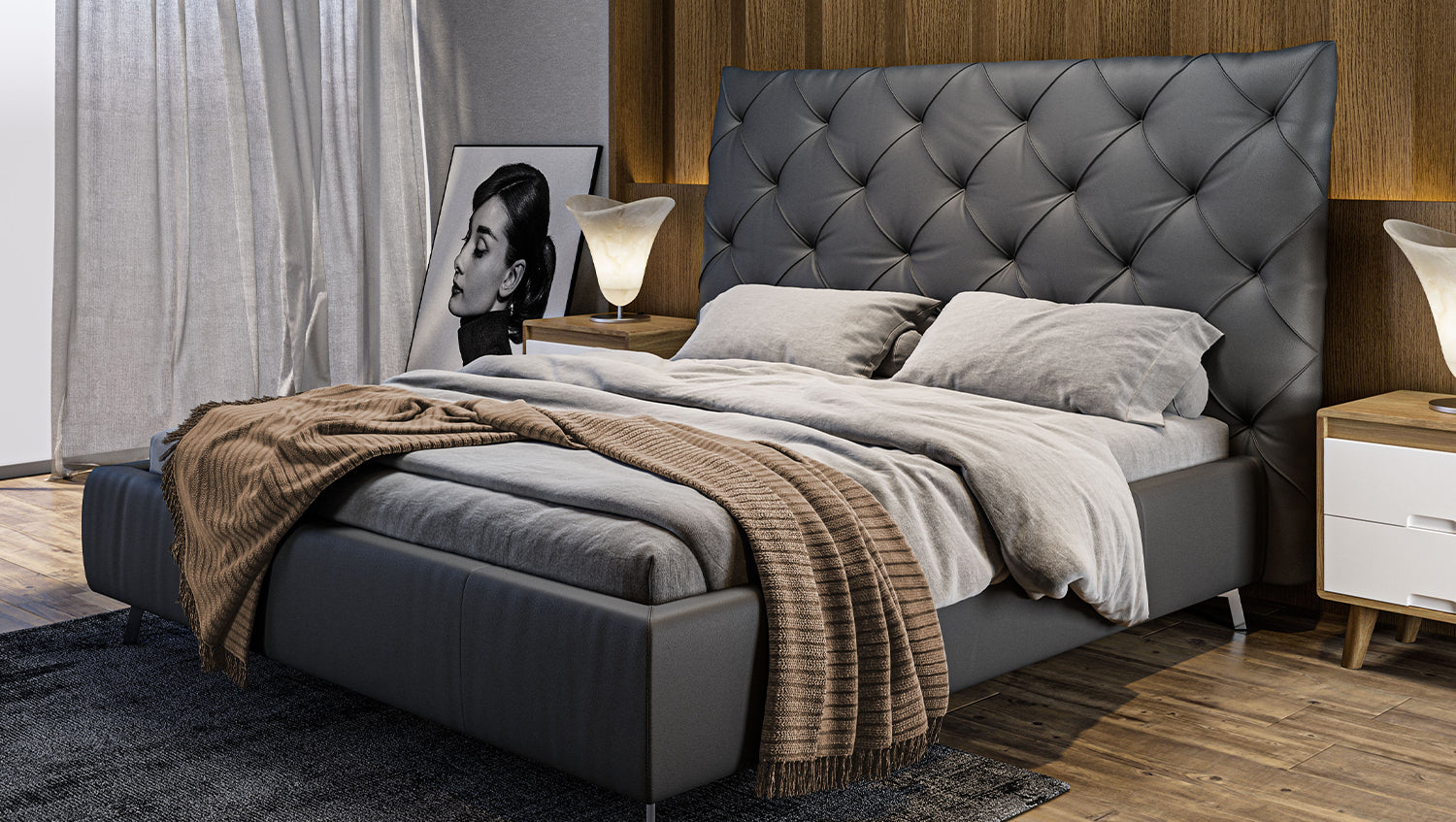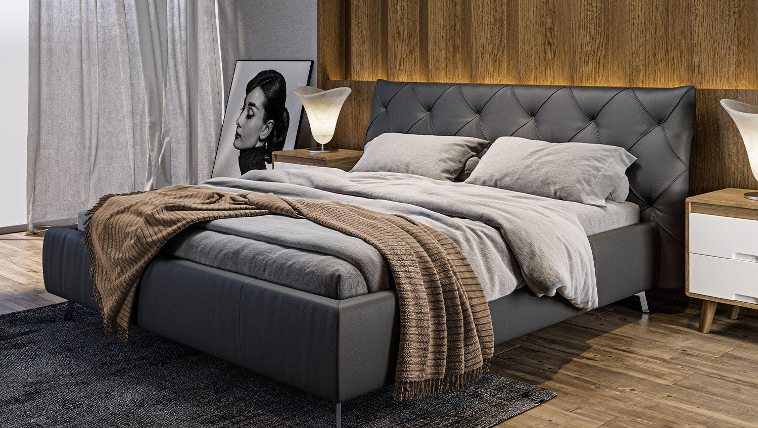 La cama tapizada ANNY de KAWOLA es un verdadero acierto para cualquier dormitorio. El cabecero, el piecero y los paneles laterales están tapizados en piel de alta calidad. El clásico acolchado del cabecero confiere a la cama una elegancia atemporal. El cómodo acolchado garantiza la máxima comodidad al sentarse y leer. El armazón de la cama está fabricado en madera maciza y materiales derivados de la madera, y los pies de metal cromado, de bonitas formas, completan a la perfección el elegante diseño. El mueble se integra perfectamente en cualquier interior y promete una estancia maravillosa en su acogedor hogar. ¡No querrás separarte de la cama tapizada ANNY!