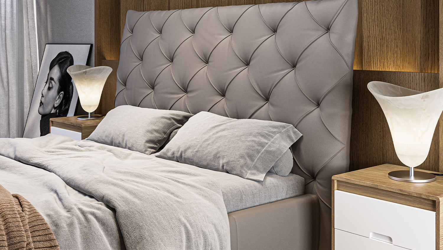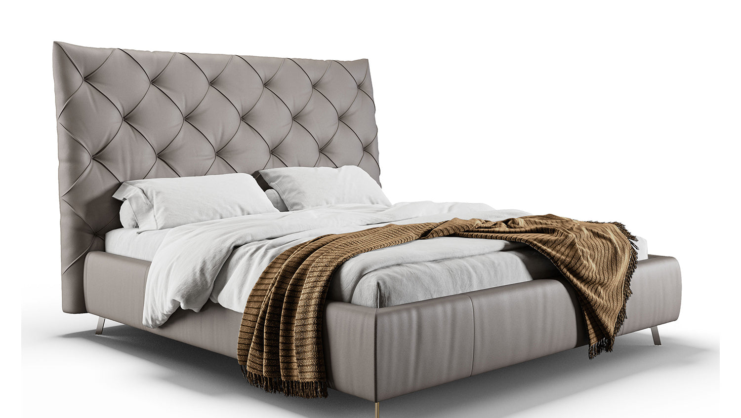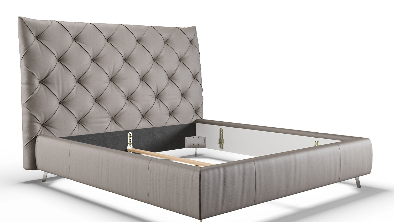 KAWOLA cama ANNY cama tapizada cuero gris