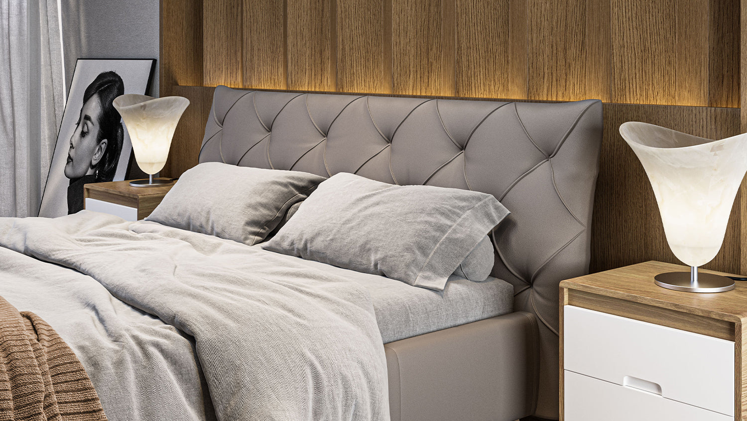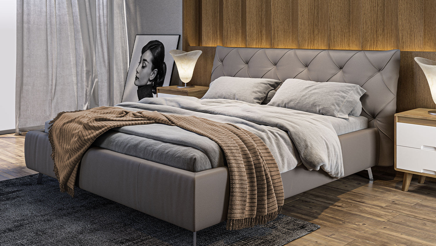 La cama tapizada ANNY de KAWOLA es un verdadero acierto para cualquier dormitorio. El cabecero, el piecero y los paneles laterales están tapizados en piel de alta calidad. El clásico acolchado del cabecero confiere a la cama una elegancia atemporal. El cómodo acolchado garantiza la máxima comodidad al sentarse y leer. El armazón de la cama está fabricado en madera maciza y materiales derivados de la madera, y los pies de metal cromado, de bonitas formas, completan a la perfección el elegante diseño. El mueble se integra perfectamente en cualquier interior y promete una estancia maravillosa en su acogedor hogar. ¡No querrás separarte de la cama tapizada ANNY!
