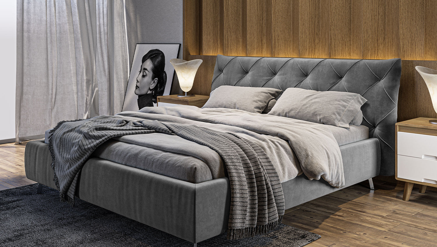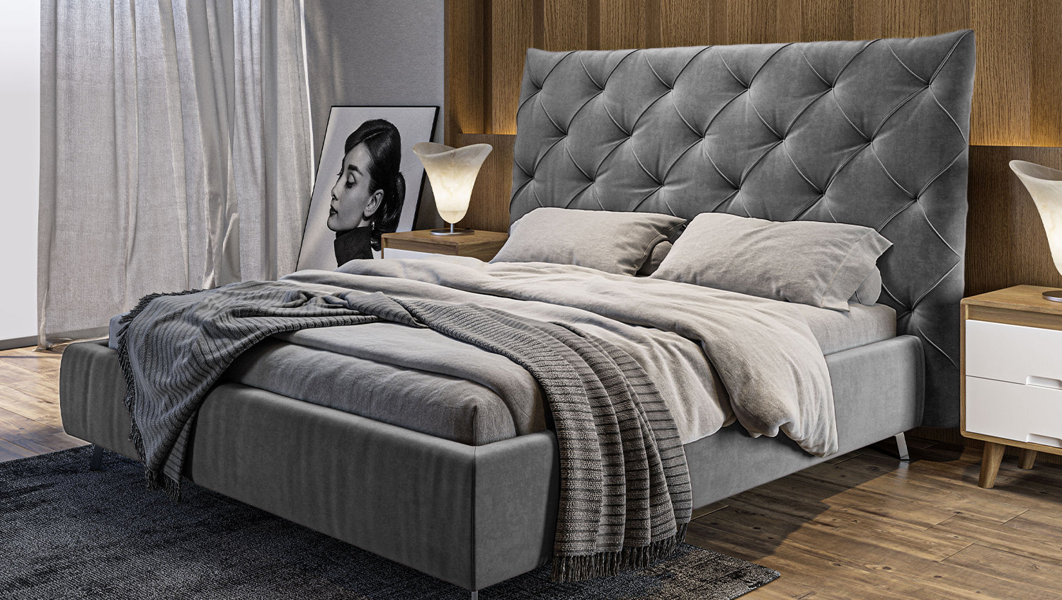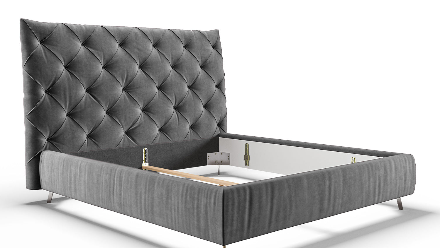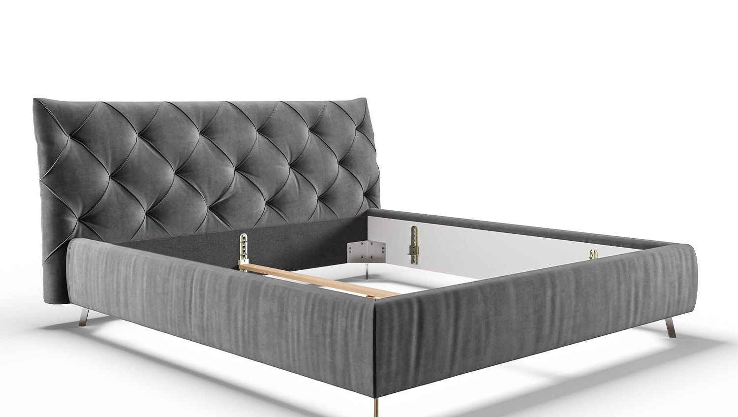 KAWOLA cama ANNY cama tapizada Terciopelo gris