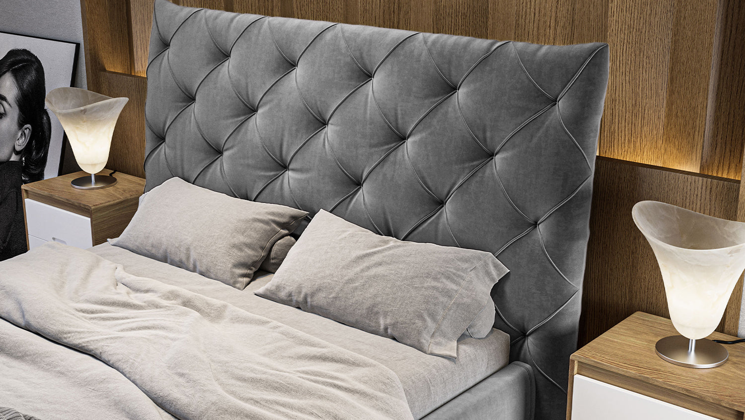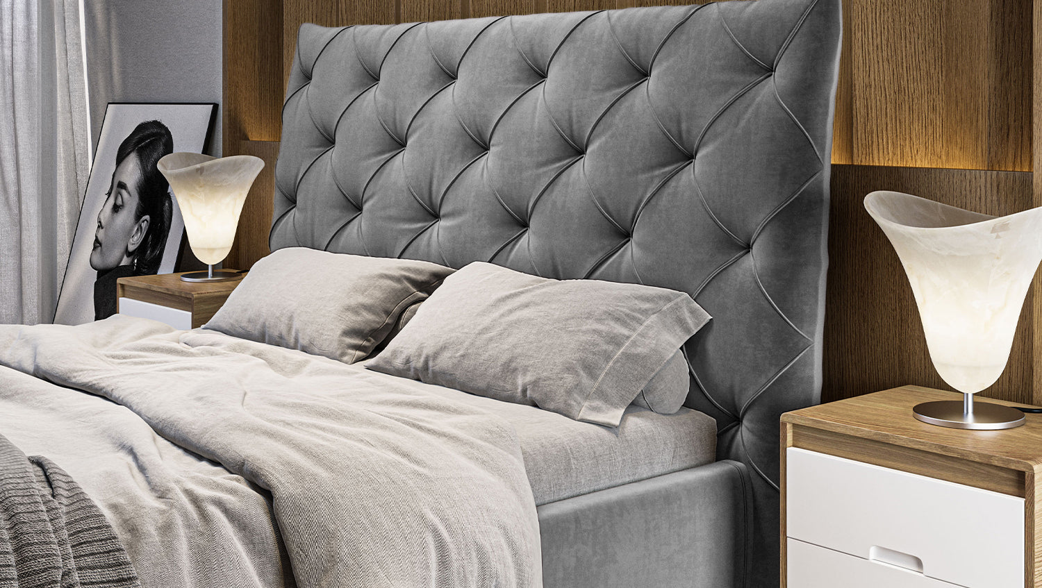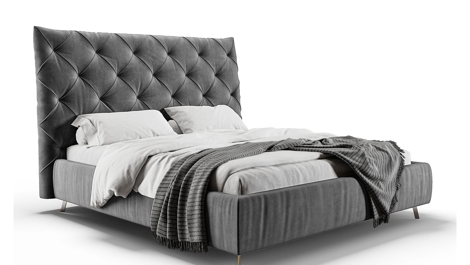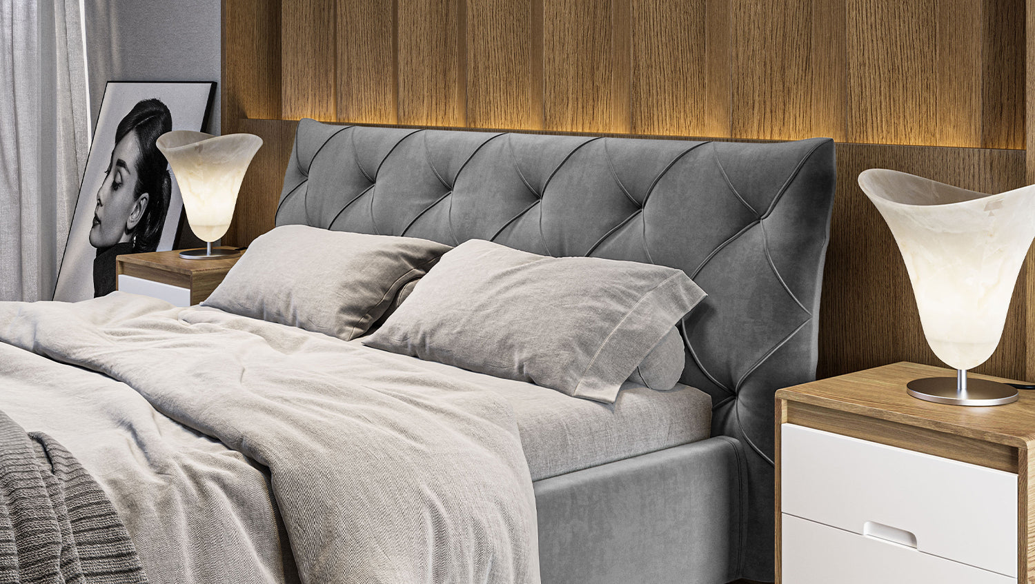 KAWOLA cama ANNY cama tapizada Terciopelo gris