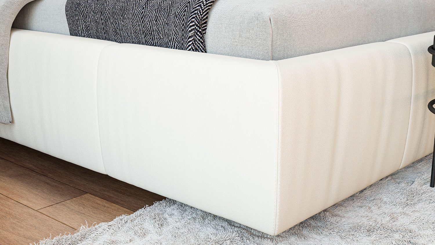 KAWOLA cama HENRY cama tapizada de cuero blanco