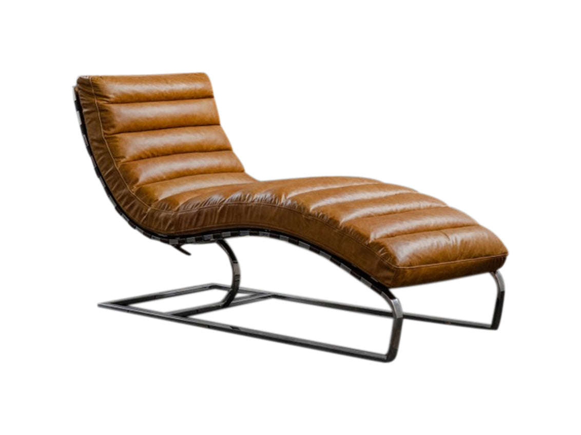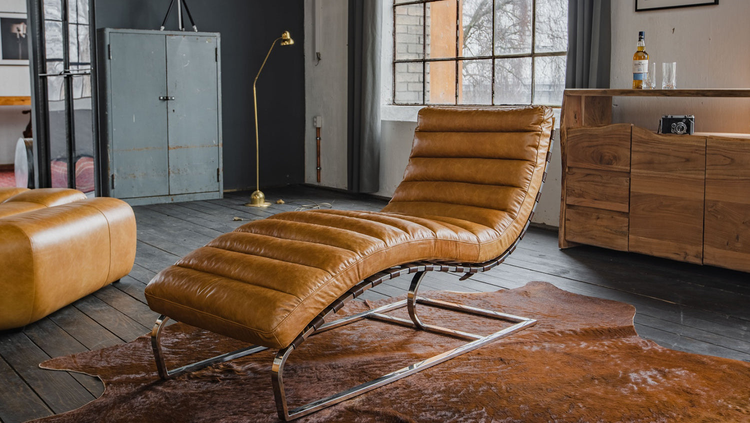 La tumbona tapizada KAWOLA SIRY combina un diseño exclusivo con una calidad increíblemente alta. El diseño atemporal de la tumbona y la combinación de cuero vintage de alta calidad con un armazón de metal convierten a este mueble en un elemento destacado muy especial en su salón.