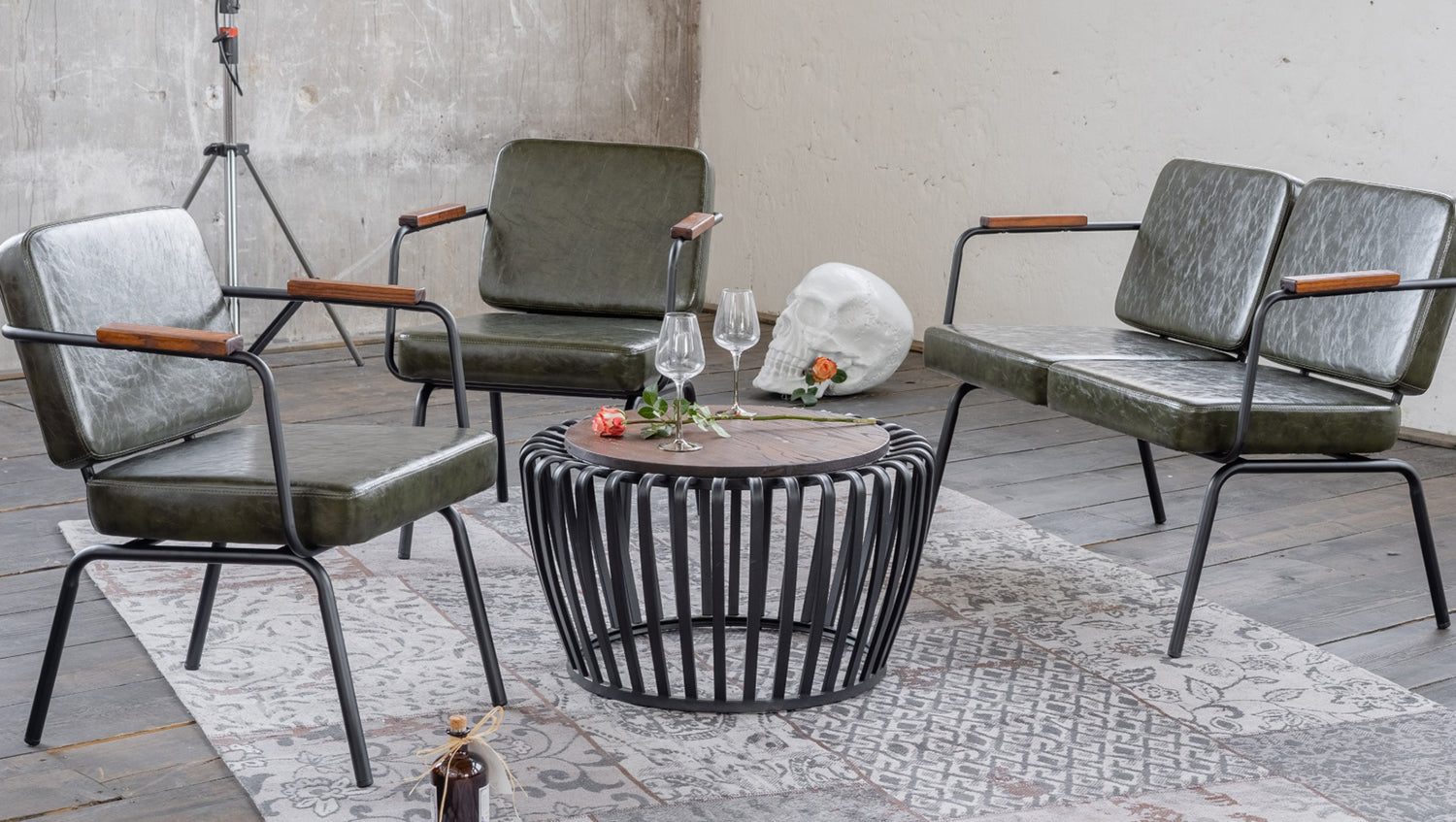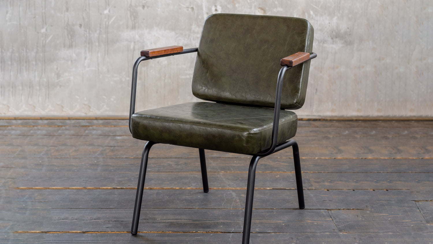 La silla VISU de KAWOLA tiene un moderno aspecto retro. La estructura metálica está pintada en negro y la tapicería está revestida en elegante piel sintética verde abeto. Esta silla de comedor se ha diseñado prestando gran atención a los detalles, por ejemplo, los reposabrazos están parcialmente revestidos en madera. Tanto si eres un amante de lo retro como si simplemente buscas algo especial para tu comedor, la silla VISU siempre llama la atención.