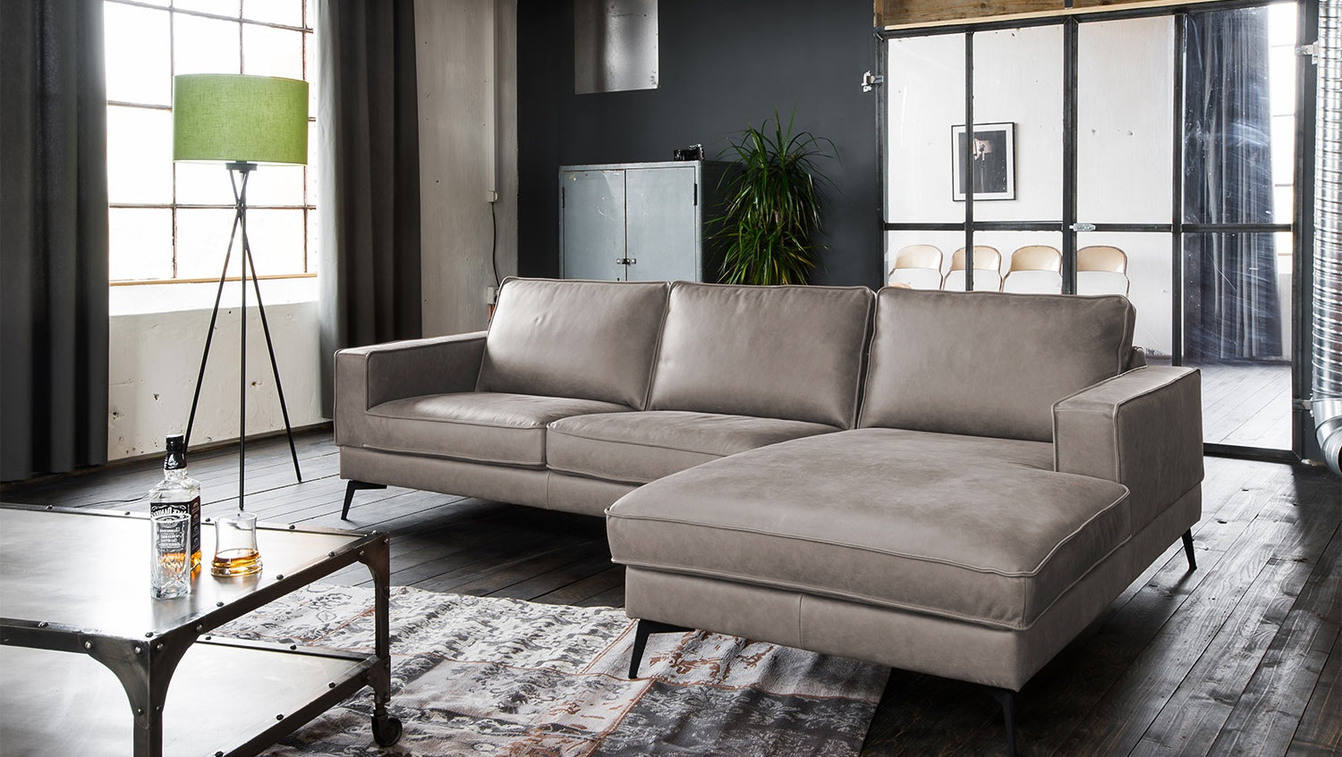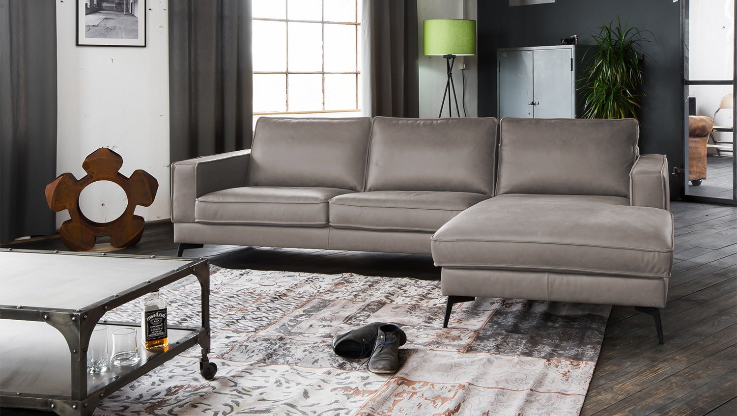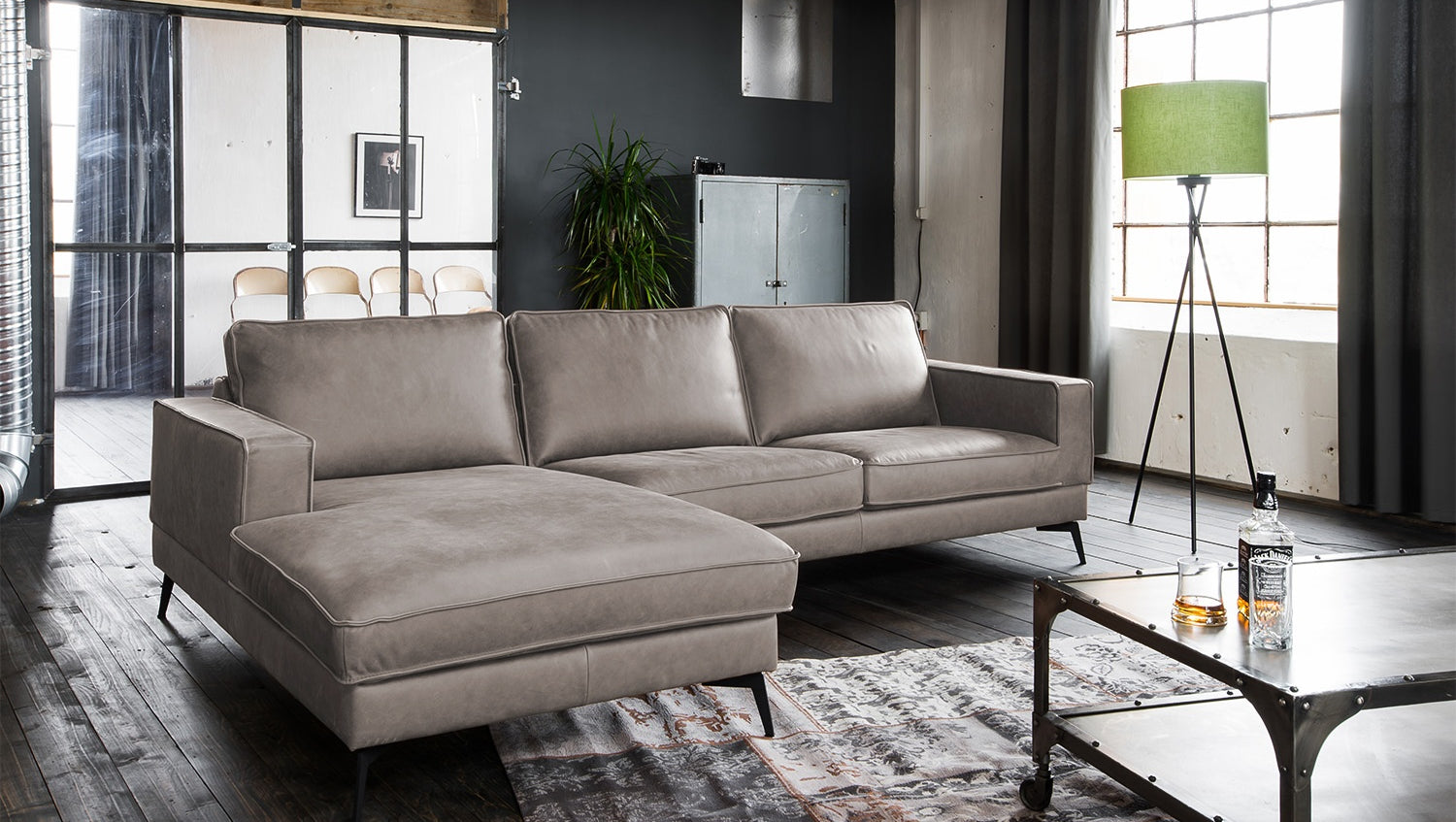 KAWOLA Sofá BLOOM Sofá esquinero cuero gris claro