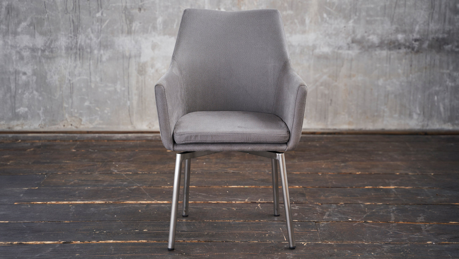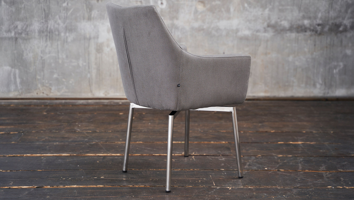 Esta silla es 2a oportunidad de una devolución de un cliente, que tiene ciertos defectos de menor importancia y por lo tanto es ofrecido por nosotros a un precio reducido. Los posibles defectos son: Arañazos en el armazón, marcas de presión, ligera suciedad y desviaciones de color en la tapicería, así como desgarros en la tela de los bajos. Por favor, eche un vistazo a las fotos de defectos directamente después de la foto principal. Sólo sirven para ilustrar posibles defectos. Se trata de imágenes de ejemplo generales y no representan el artículo en cuestión. El artículo no presenta necesariamente todos los defectos indicados. Las telas y colores de tapicería que aparecen en las imágenes de defectos tampoco se refieren a este artículo. La silla Cali impresiona por su diseño sencillo y elegante. Esta silla de comedor combina a la perfección lo clásico y lo moderno. Gracias a su aspecto clásico y moderno, la silla Cali se integra perfectamente en cualquier entorno. El armazón de acero inoxidable armoniza a la perfección con el tapizado elegido y confiere a la silla un carácter moderno. Lo más destacado de la silla es que la carcasa del asiento es giratoria. Ya sea en el comedor, en la sala de conferencias o en la sala de espera, la silla Cali destaca en todas partes.