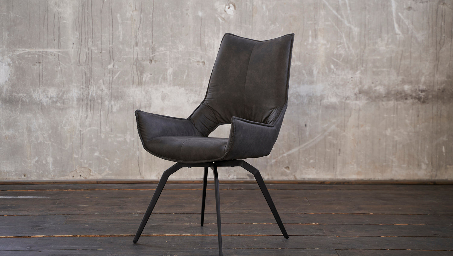 La silla de comedor SIVO llama inmediatamente la atención por su interesante forma. Tanto la carcasa del asiento, cómodamente acolchada, como las patas giratorias en ángulo tienen un diseño inusual. En la carcasa del asiento, que por lo demás es continua, hay un hueco en la parte inferior del respaldo que completa su aspecto especial. La funda de tela de la silla giratoria es fácil de cuidar y muy agradable al tacto. La silla tapizada es ideal para el comedor o la zona de trabajo en casa, como silla en la sala de espera o como silla de reuniones en la oficina.