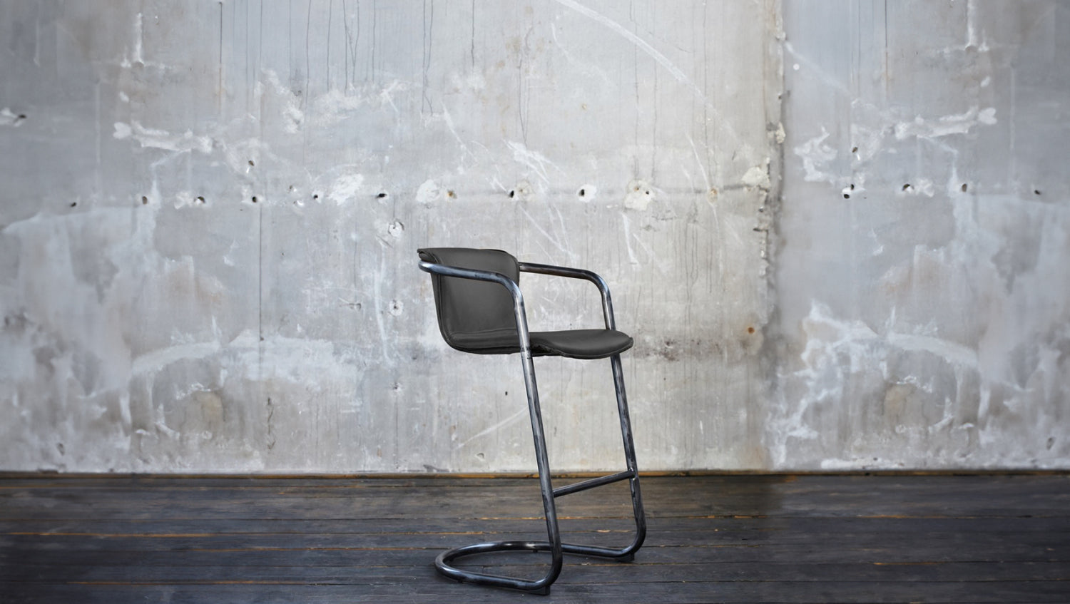 Taburete de bar KAWOLA Trivia Taburete de bar de cuero gris