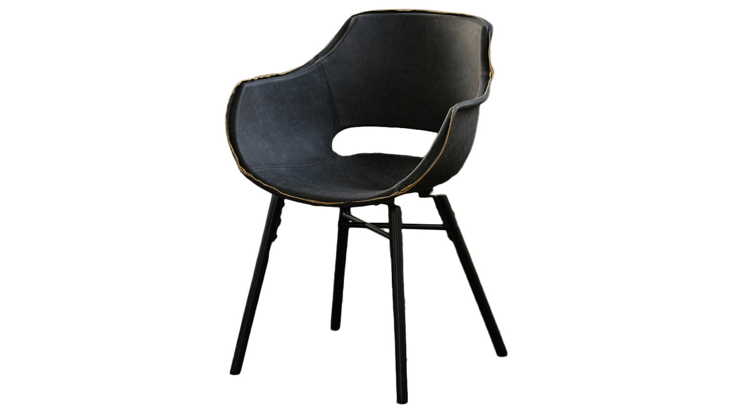 Silla KAWOLA silla de comedor exclusiva ZAJA de cuero genuino negro
