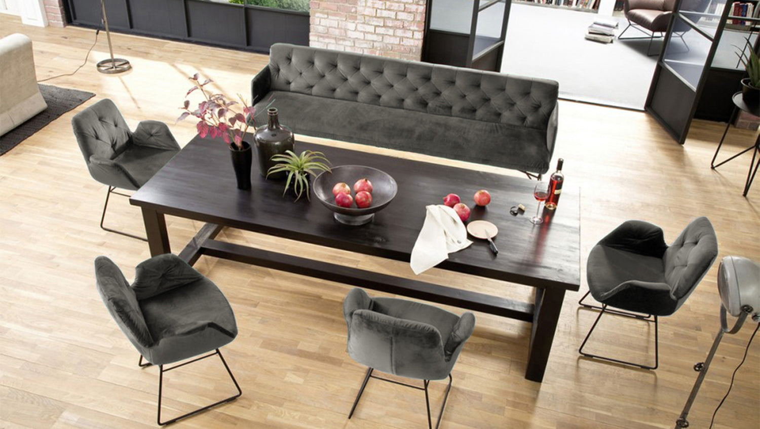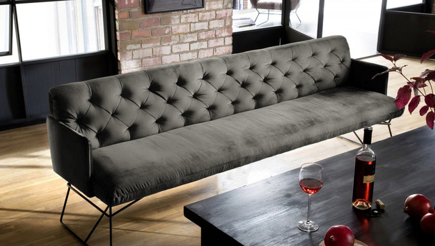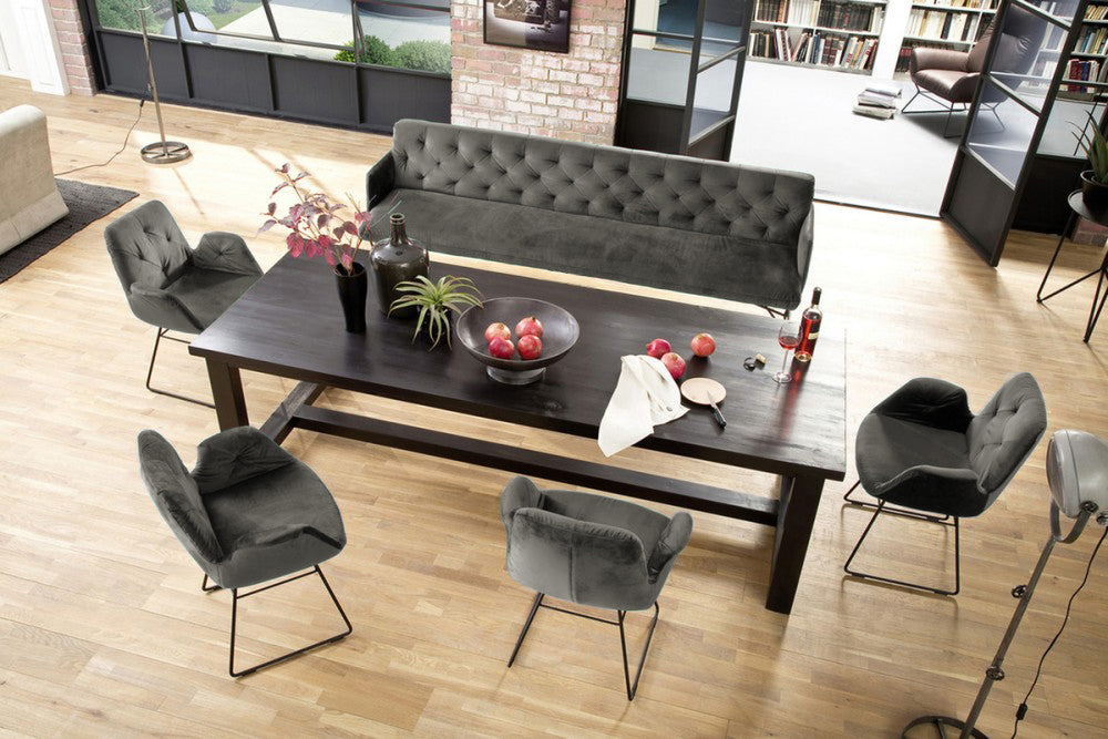 El banco de comedor CHARME de KAWOLA en color Velvet Stone aporta un aire vintage a cualquier estancia. Gracias a su diseño minimalista, el cómodo Banco tapizado CHARME es adecuado para cualquier hogar e invita a pasar las tardes jugando con los amigos o la familia. El banco se caracteriza por su tapizado desenfadado y el elevado confort de asiento asociado. Además, el respaldo con su estilo Chesterfield aporta el deseado aspecto de la vieja escuela a su salón. La construcción desenfadada del asiento hace que la forma ondulada sea típica del modelo y deseada en términos de diseño, lo que acentúa el factor acogedor del banco. La funda de terciopelo aterciopelado acentúa aún más la acogedora tapicería, haciendo que la sensación del banco sea acogedora y cómoda. Como CHARME está revestido en su totalidad de tela, el cómodo banco también puede colocarse en cualquier lugar de la habitación. Con sus patas de alambre y su tapizado aterciopelado, el Banco tapizado encaja perfectamente en su hogar. Con 166 cm de longitud, tiene espacio para que hasta cuatro personas disfruten de una comodidad de asiento ilimitada. Gracias a su aspecto, el banco de comedor es el complemento perfecto de las sillas de comedor ZAJA de nuestra gama.