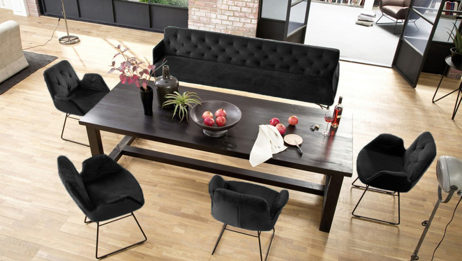 Banco de comedor KAWOLA CHARME Terciopelo negro