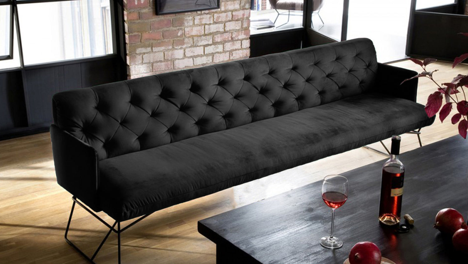 El banco de comedor CHARME de KAWOLA en color negro aterciopelado aporta un aire vintage a cualquier estancia. Gracias a su diseño minimalista, el cómodo Banco tapizado CHARME es adecuado para cualquier hogar e invita a pasar las tardes jugando con los amigos o la familia. El banco se caracteriza por su tapizado desenfadado y el elevado confort de asiento asociado. Además, el respaldo con su estilo Chesterfield aporta el deseado aspecto de la vieja escuela a su salón. La estructura desenfadada del asiento es típica del modelo y la deseada ondulación del diseño acentúa el factor acogedor del banco. La funda de terciopelo aterciopelado acentúa aún más el acogedor tapizado, haciendo que la sensación del banco sea acogedora y cómoda. Como CHARME está revestido en su totalidad de tela, el cómodo banco también puede colocarse en cualquier lugar de la habitación. Con sus patas de alambre y su tapizado aterciopelado, el Banco tapizado encaja perfectamente en su hogar. Con 166 cm de longitud, tiene espacio para que hasta cuatro personas disfruten de una comodidad de asiento ilimitada. Gracias a su aspecto, el banco de comedor es el complemento perfecto de las sillas de comedor ZAJA de nuestra gama.