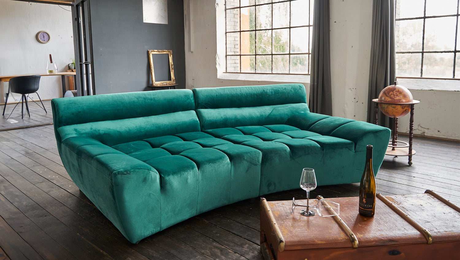 2a oportunidad KAWOLA Sofá extra ancho NERLA tela Terciopelo verde