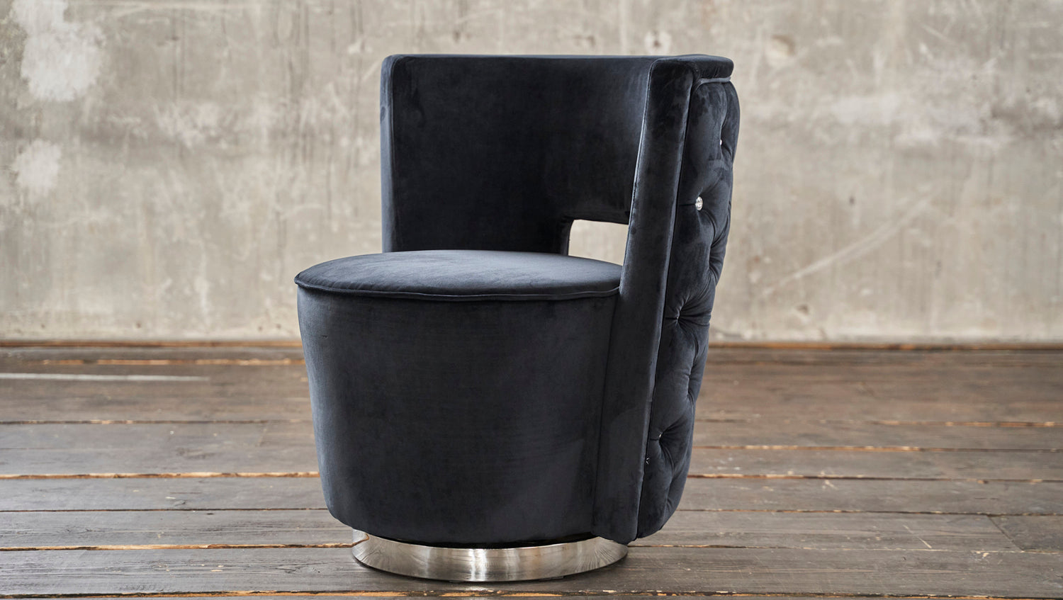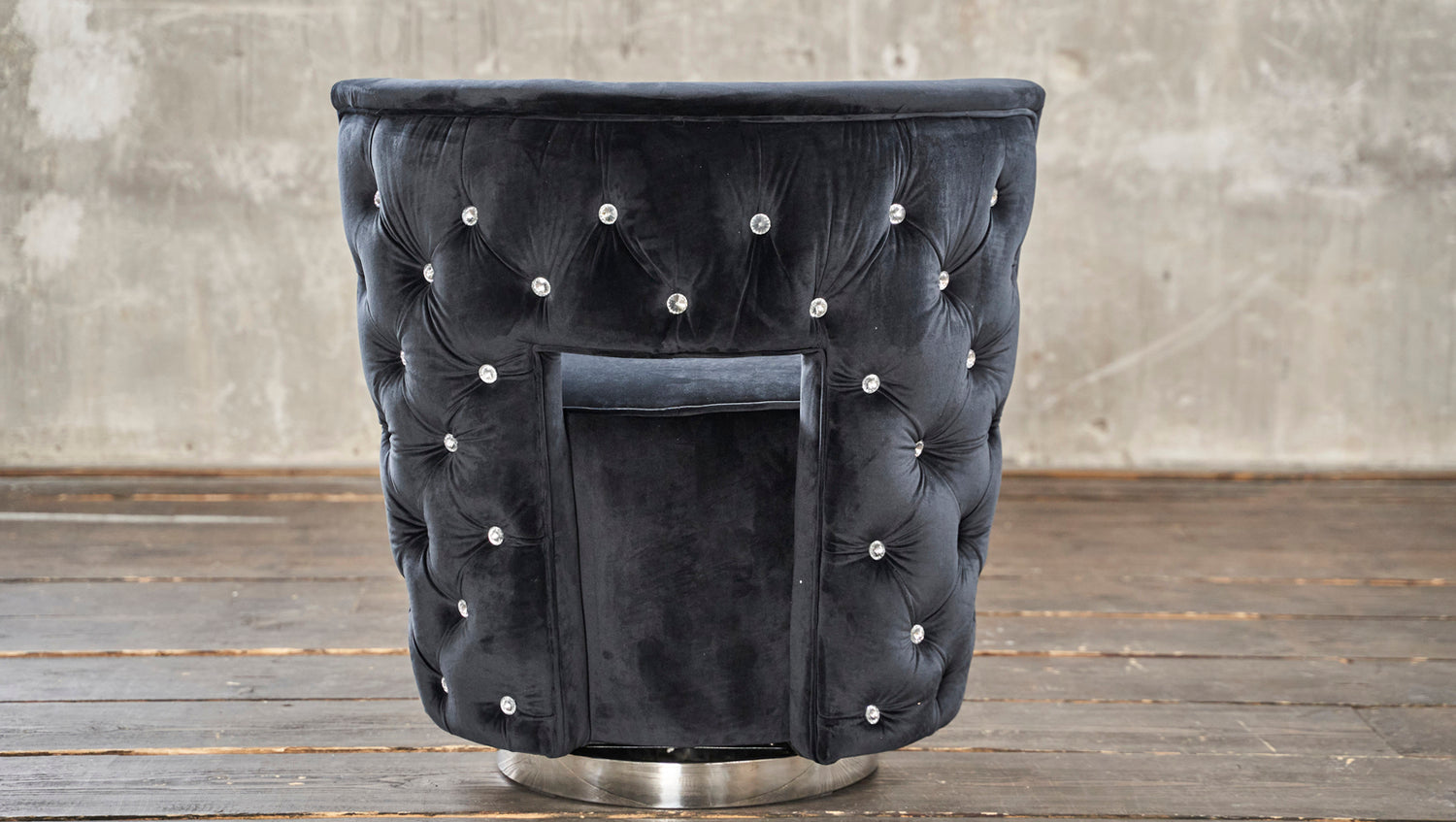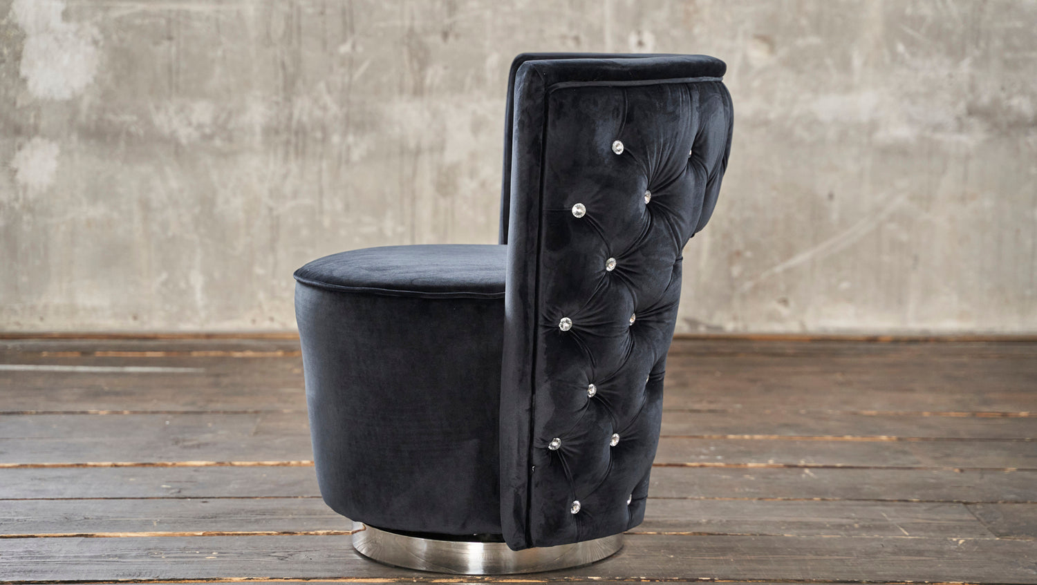 El sillón giratorio de tela SENSO de KAWOLA combina lo lúdico con un diseño único. Déjese conquistar por la suavidad de la tela y la agradable elección de colores. Su pieza de joyería tiene en el respaldo botones en forma de cristales. El sillón giratorio SENSO de KAWOLA atrae a sus sentidos: - Sentir: Convénzase de la suavidad del tejido de terciopelo - Vea: El pequeño sillón se adapta a cualquier rincón de su hogar gracias a su tamaño.