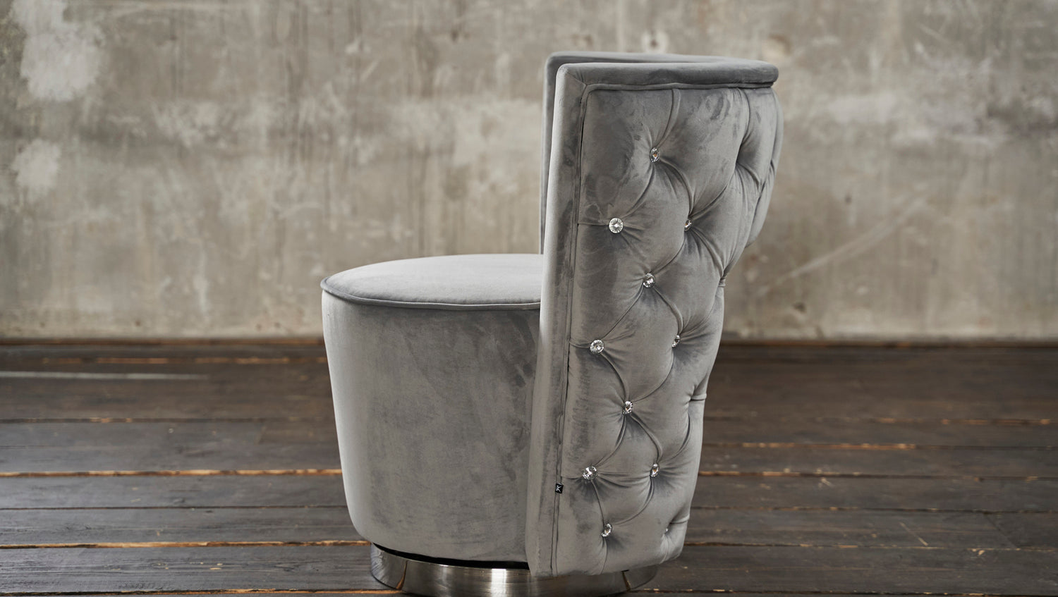 Sillón KAWOLA SENSO de terciopelo de tela gris plateado