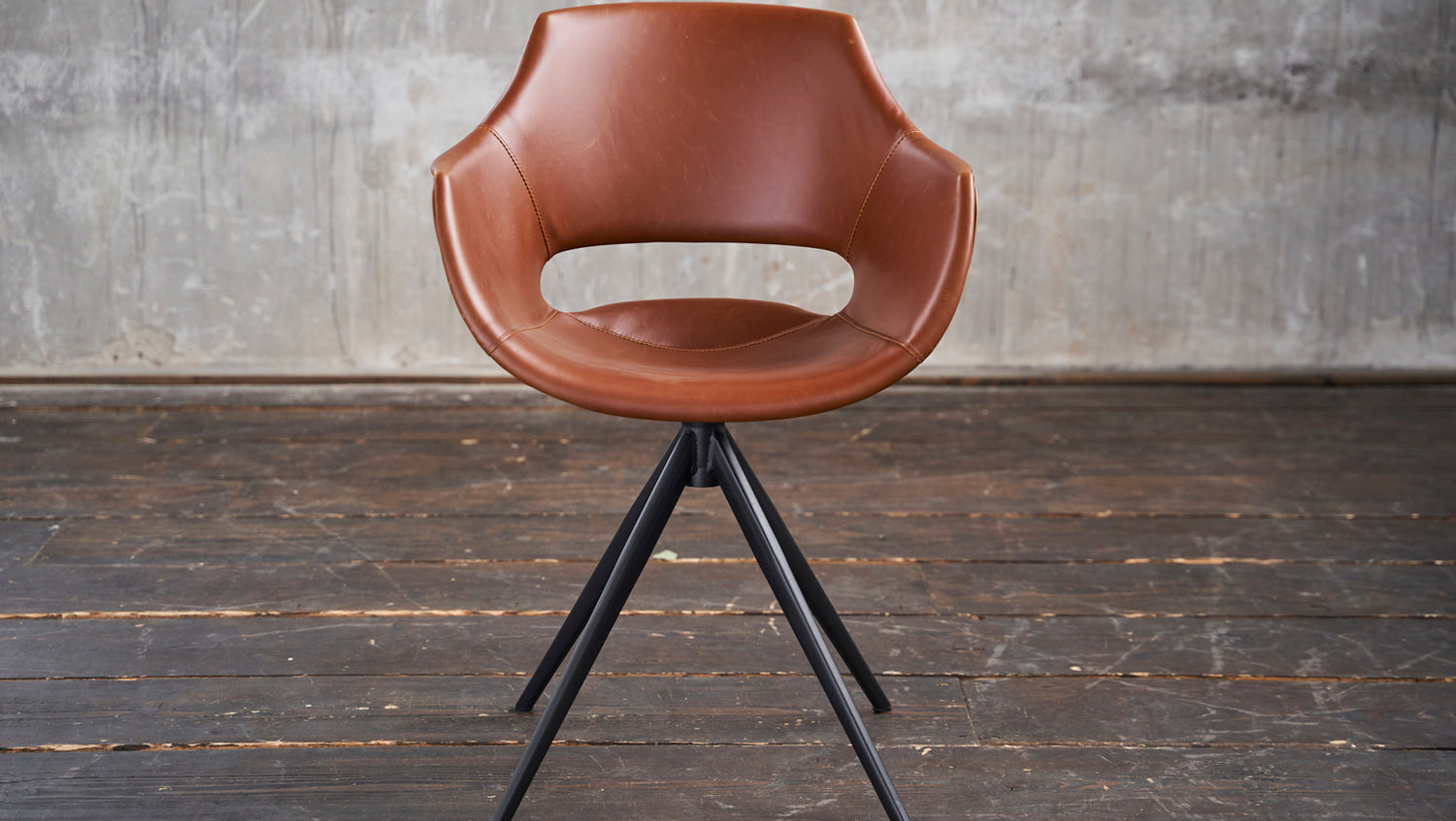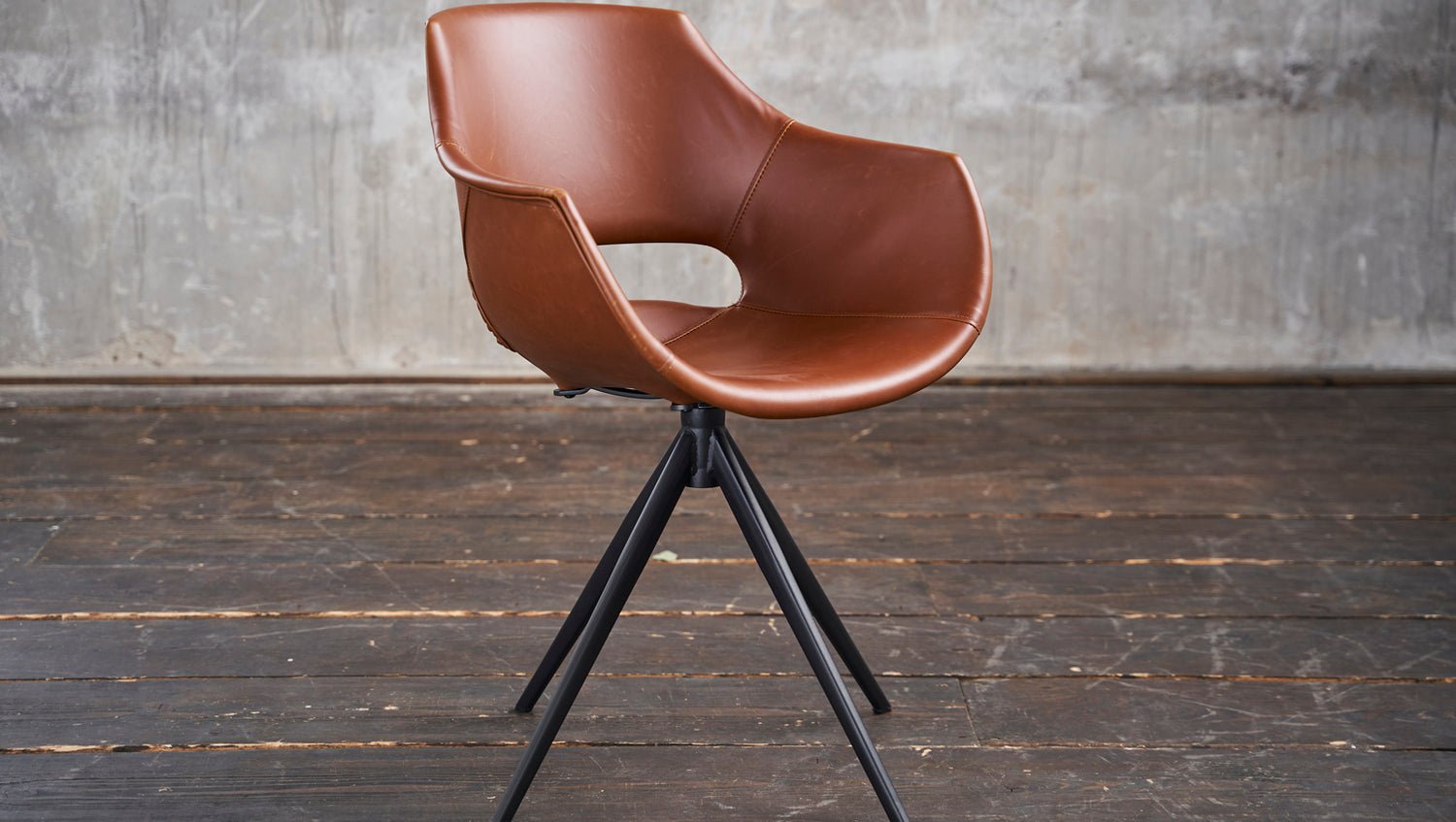 Silla KAWOLA Silla de comedor ZAJA de piel sintética giratoria coñac