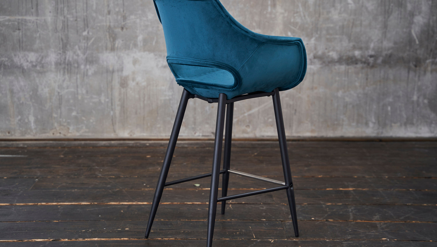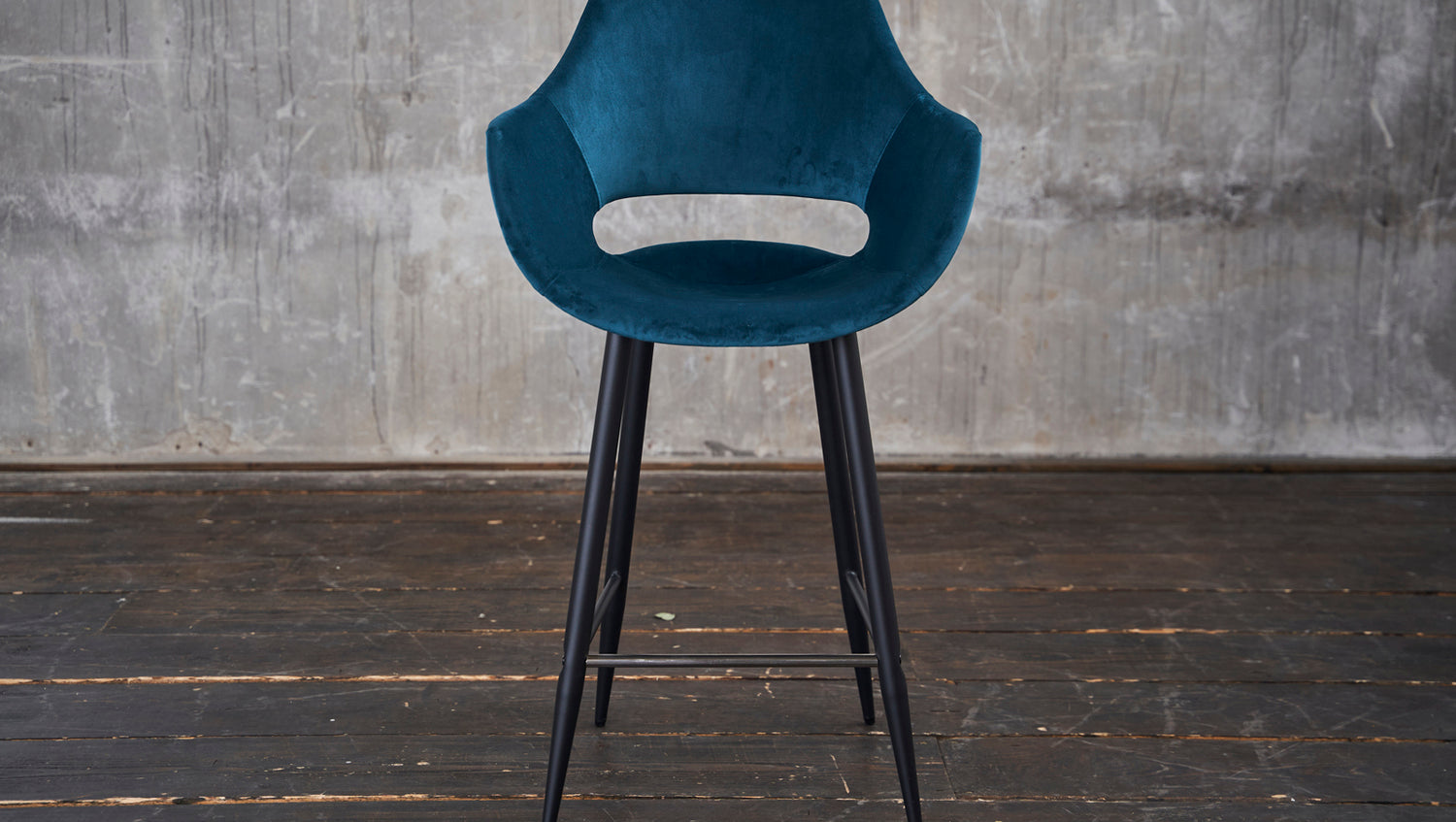 KAWOLA taburete de bar ZAJA taburete de bar altura del asiento 76 cm Terciopelo petróleo