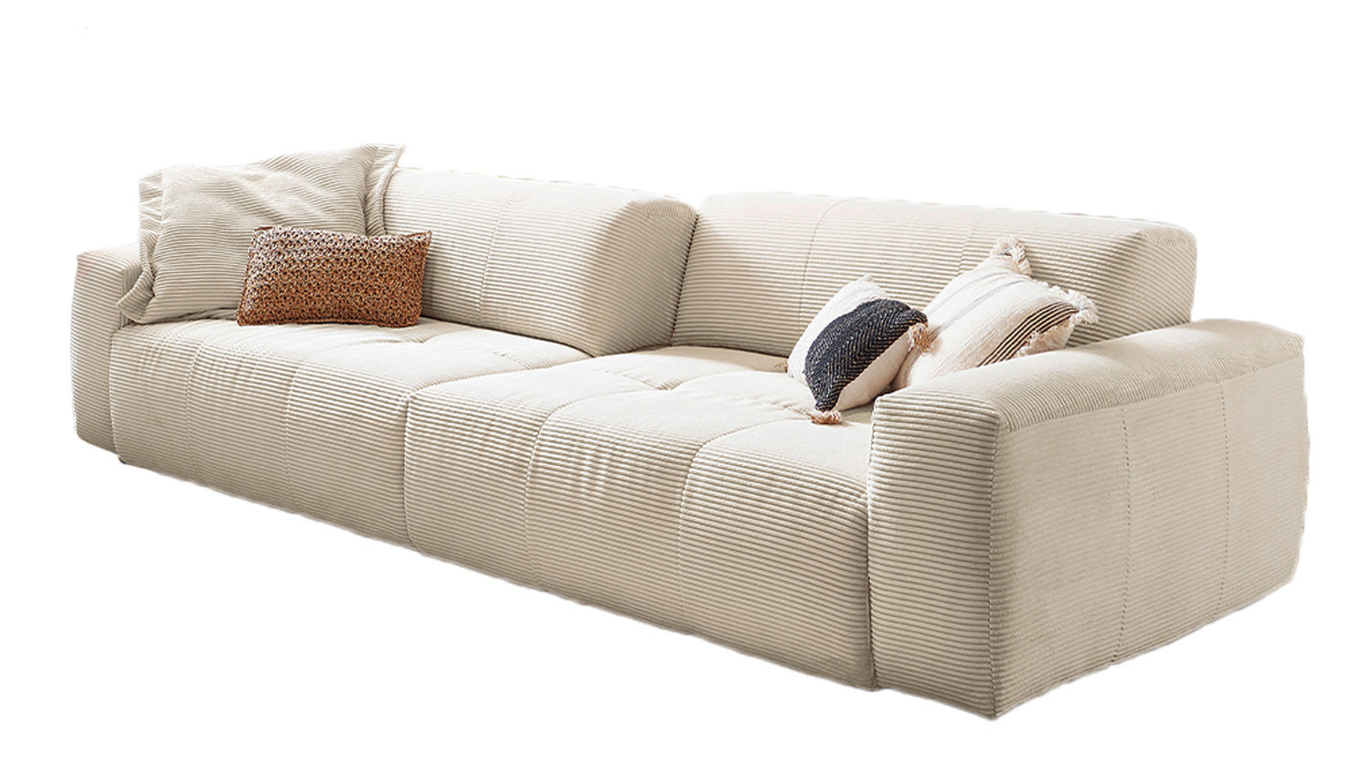 KAWOLA Sofá extra ancho PALACE 3 plazas con ajuste de la profundidad del asiento Pana crema blanco