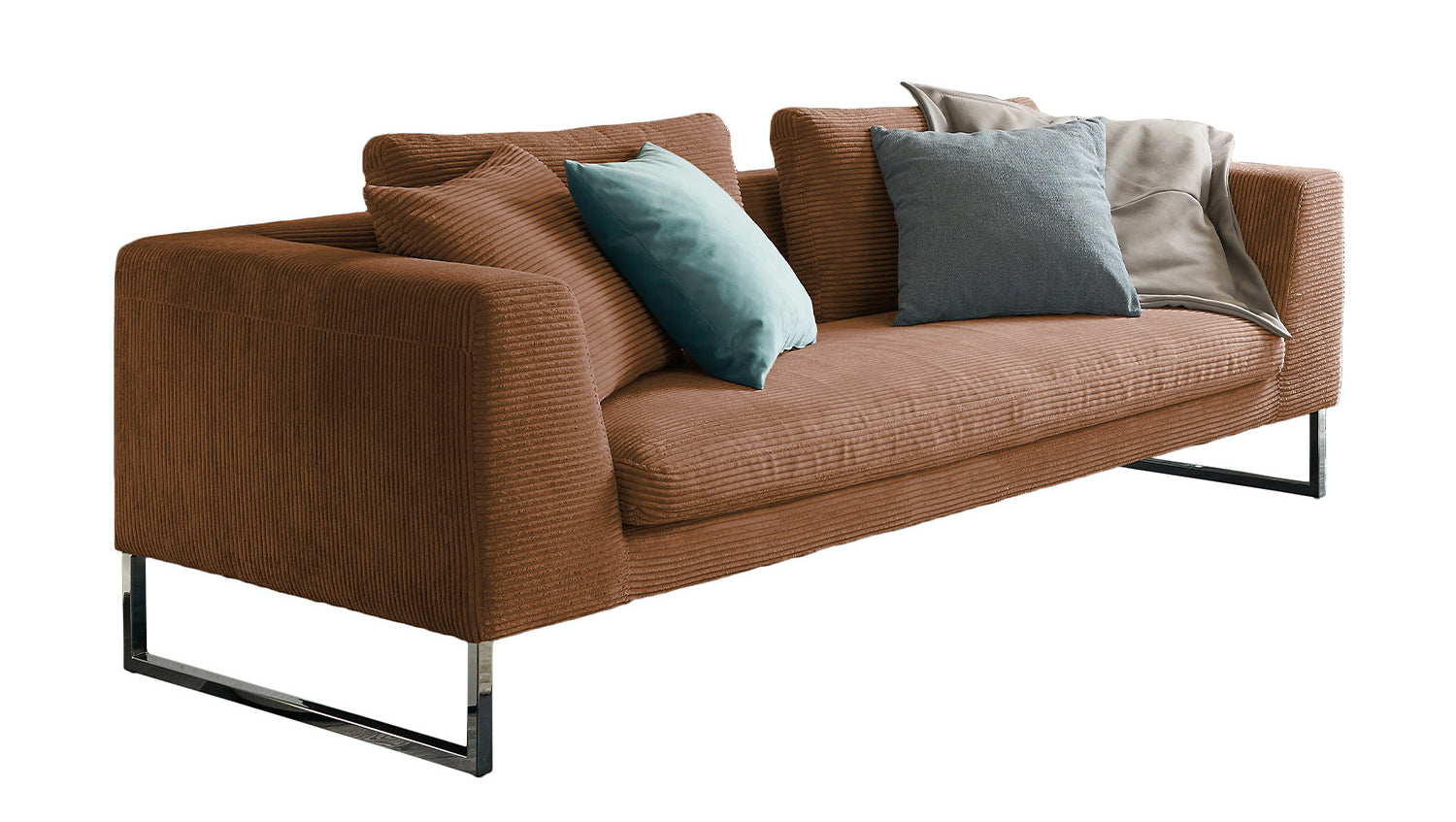 KAWOLA Sofá ARIAN 2.5 plazas patín metal cromado Pana óxido