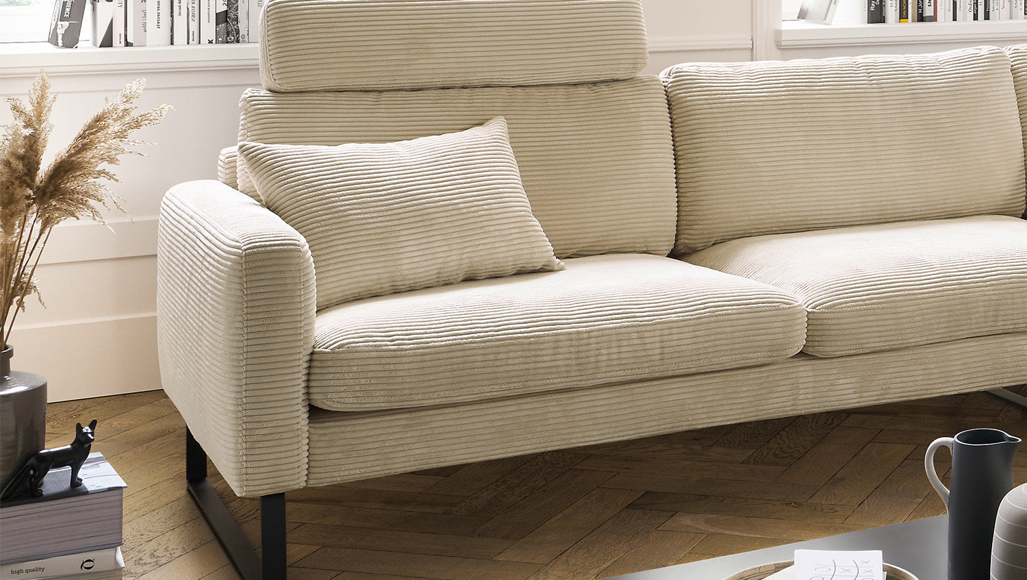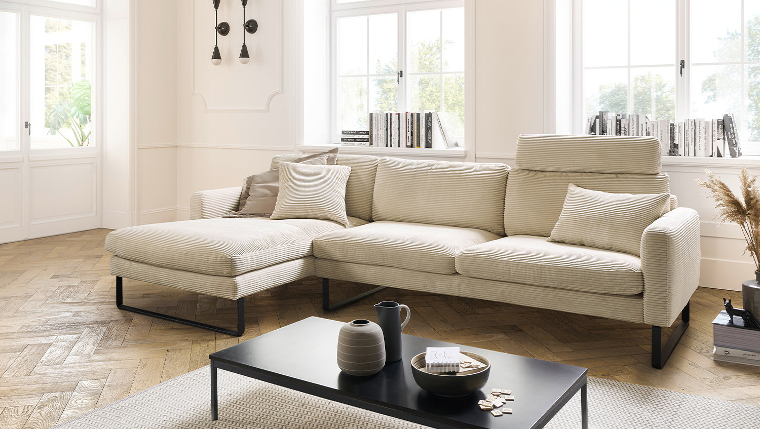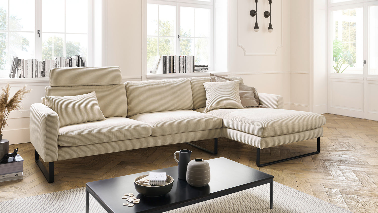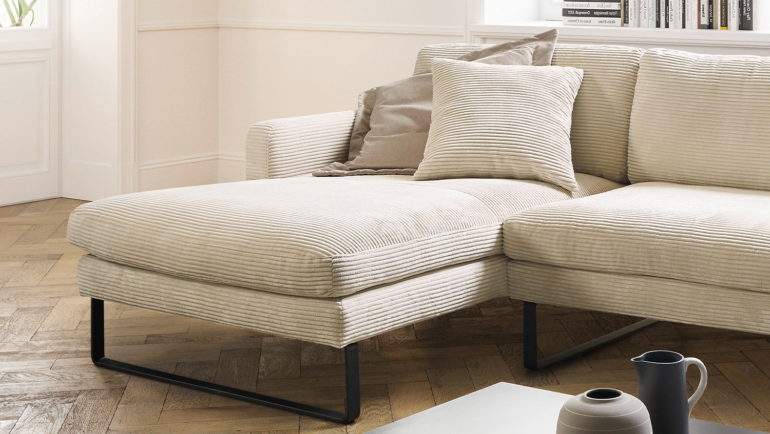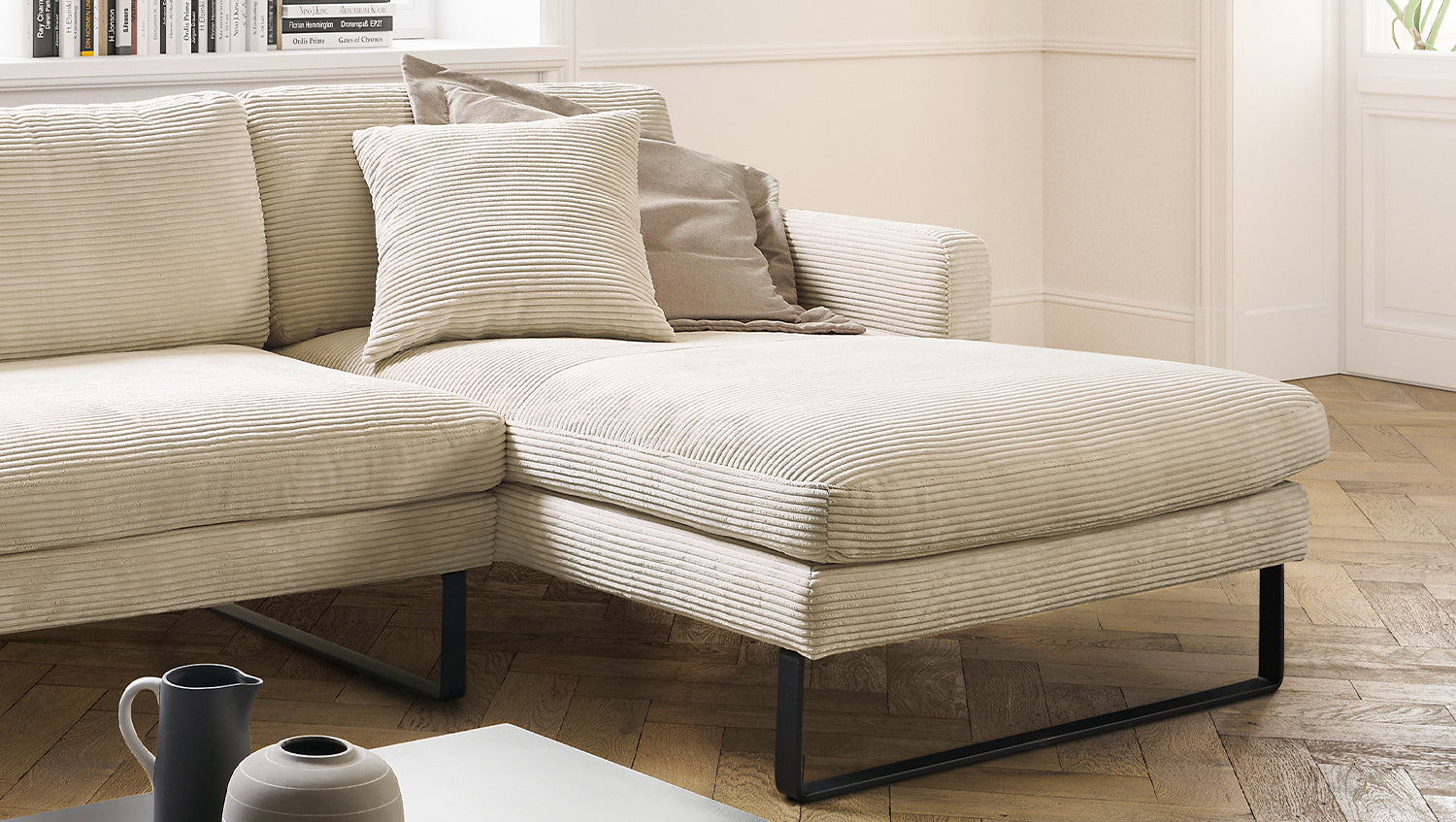 KAWOLA Sofá RICARDA Sofá esquinero Pana blanco crema
