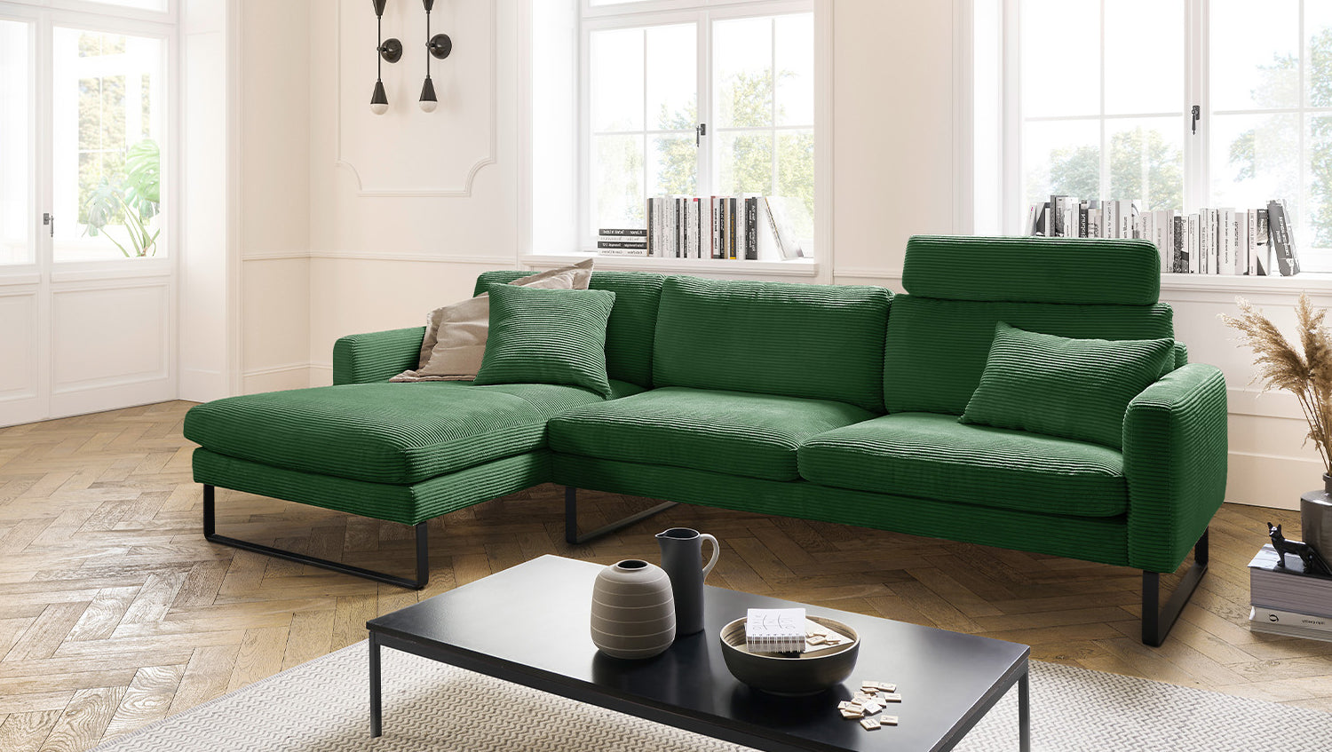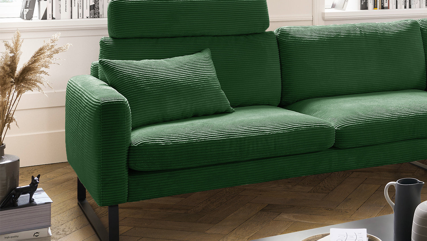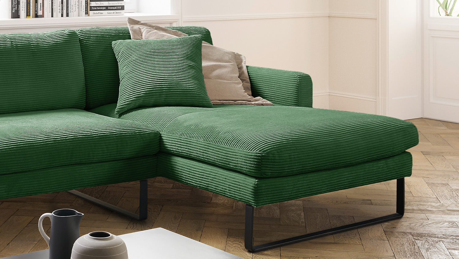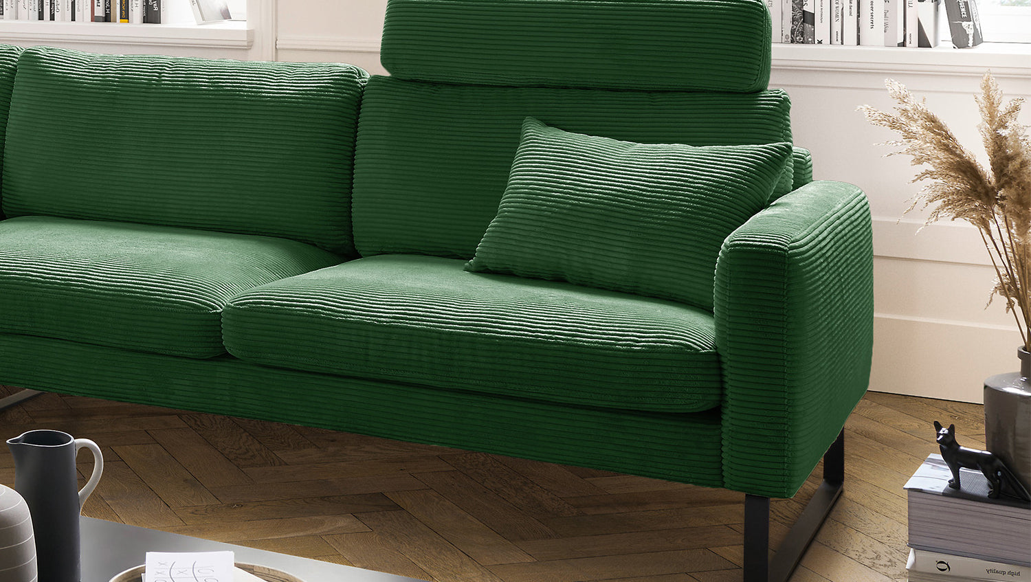 KAWOLA Sofá RICARDA Sofá esquinero Pana esmeralda