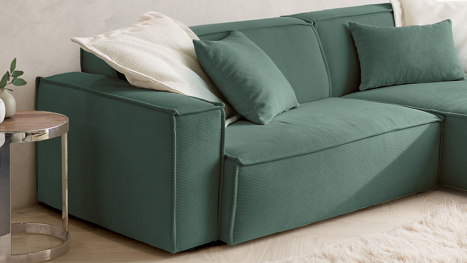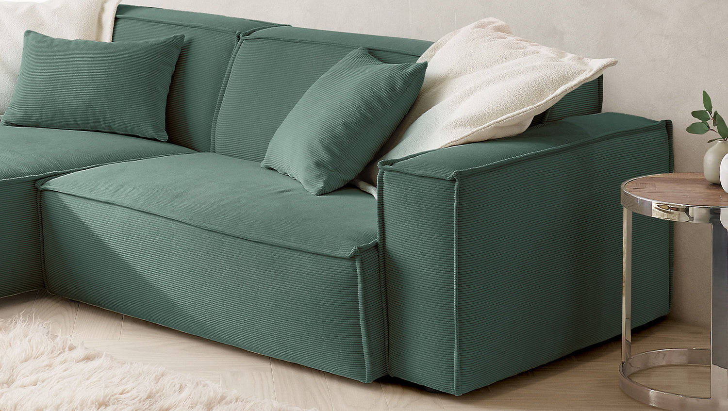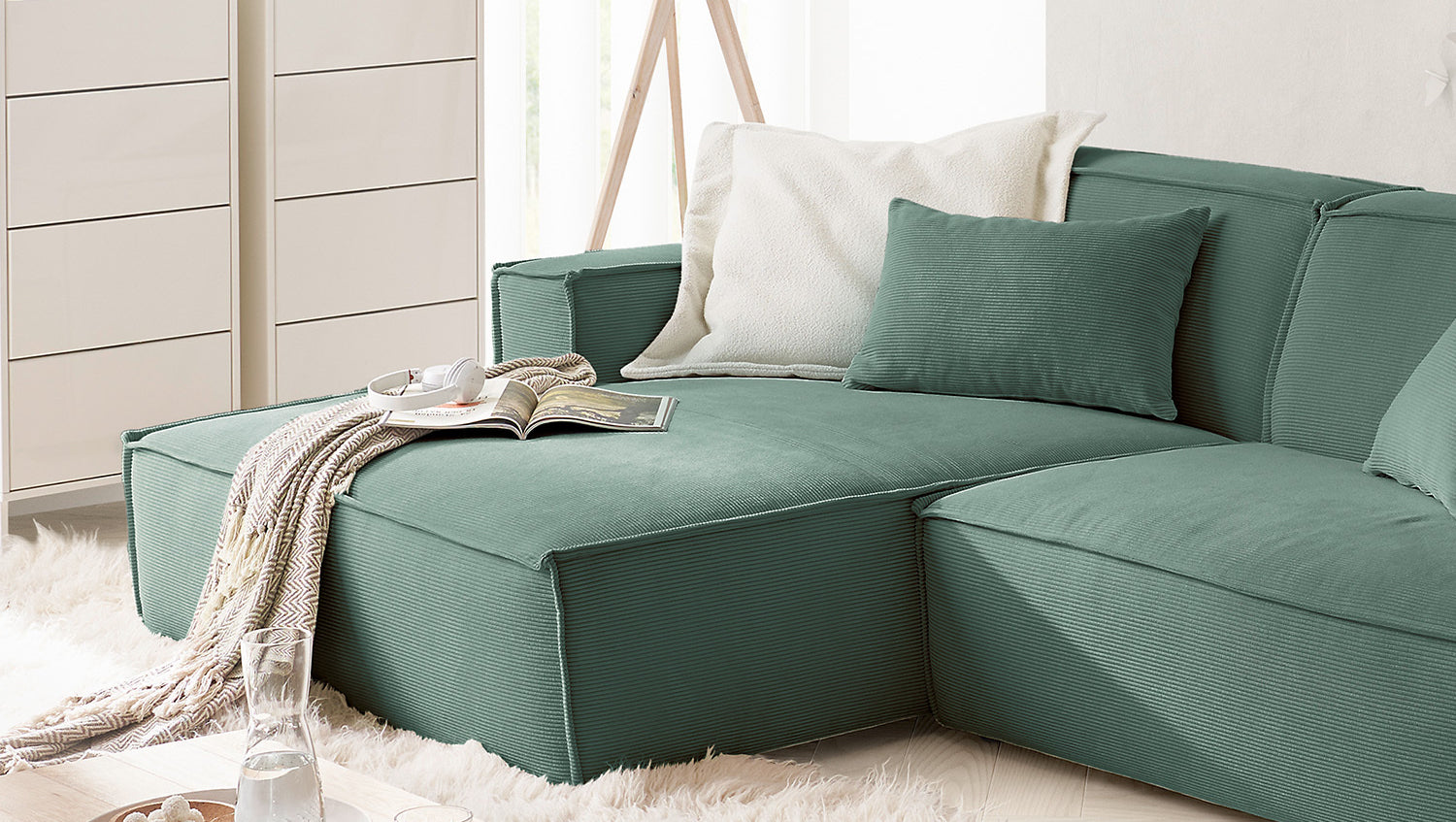 KAWOLA Sofá SAMU Sofá esquinero Pana fina verde
