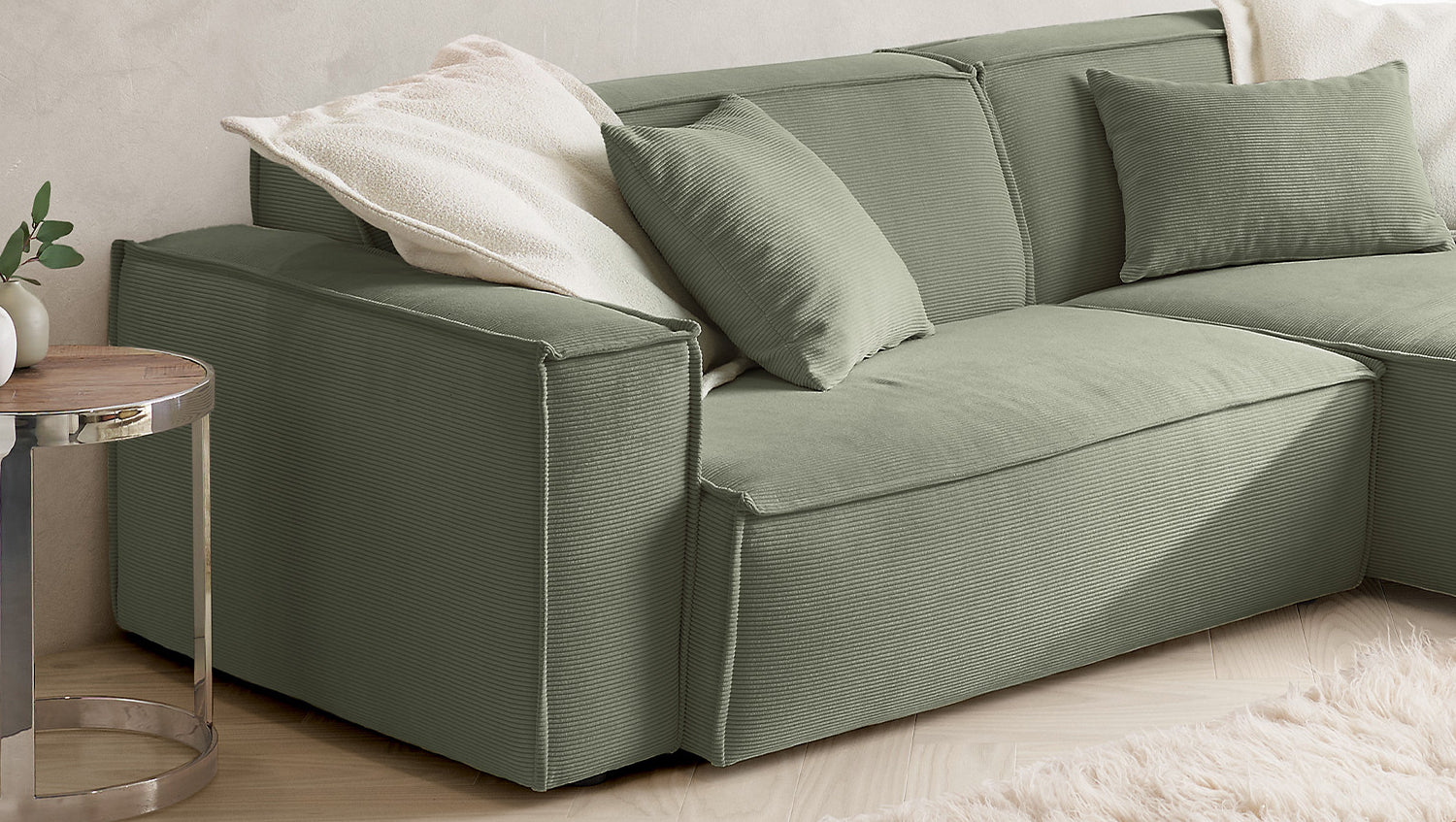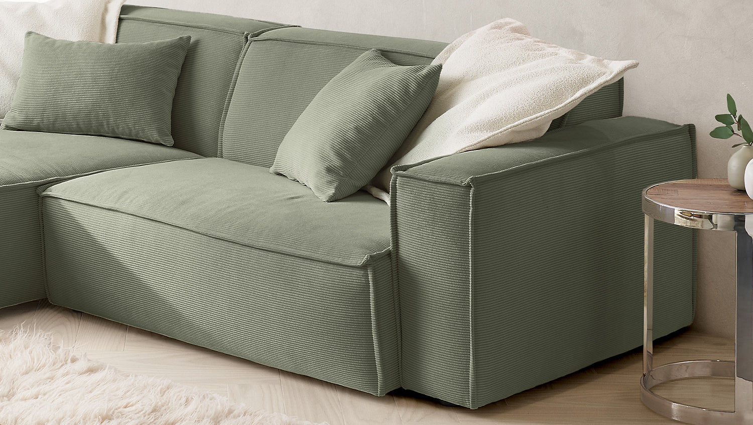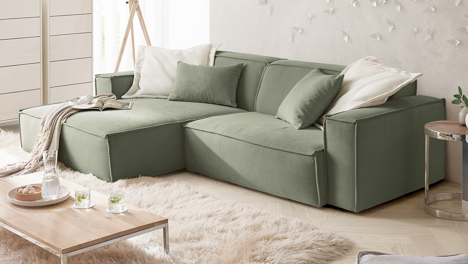 KAWOLA Sofá SAMU Sofá esquinero Pana fina verde oliva