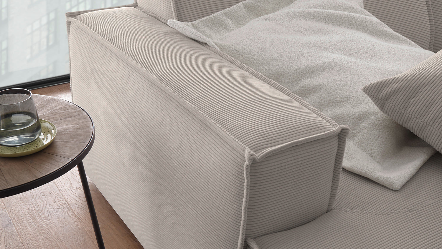 KAWOLA Sofá extra ancho SAMU pana fina beige