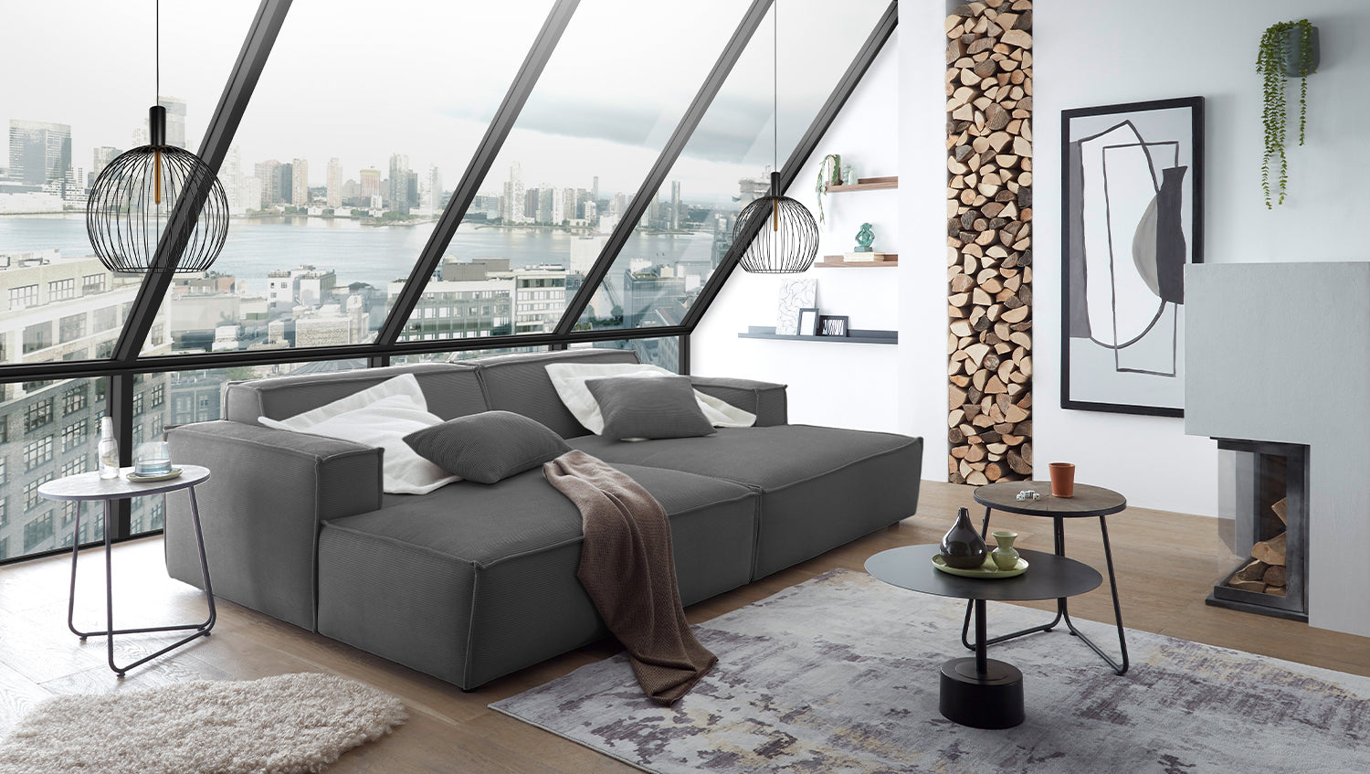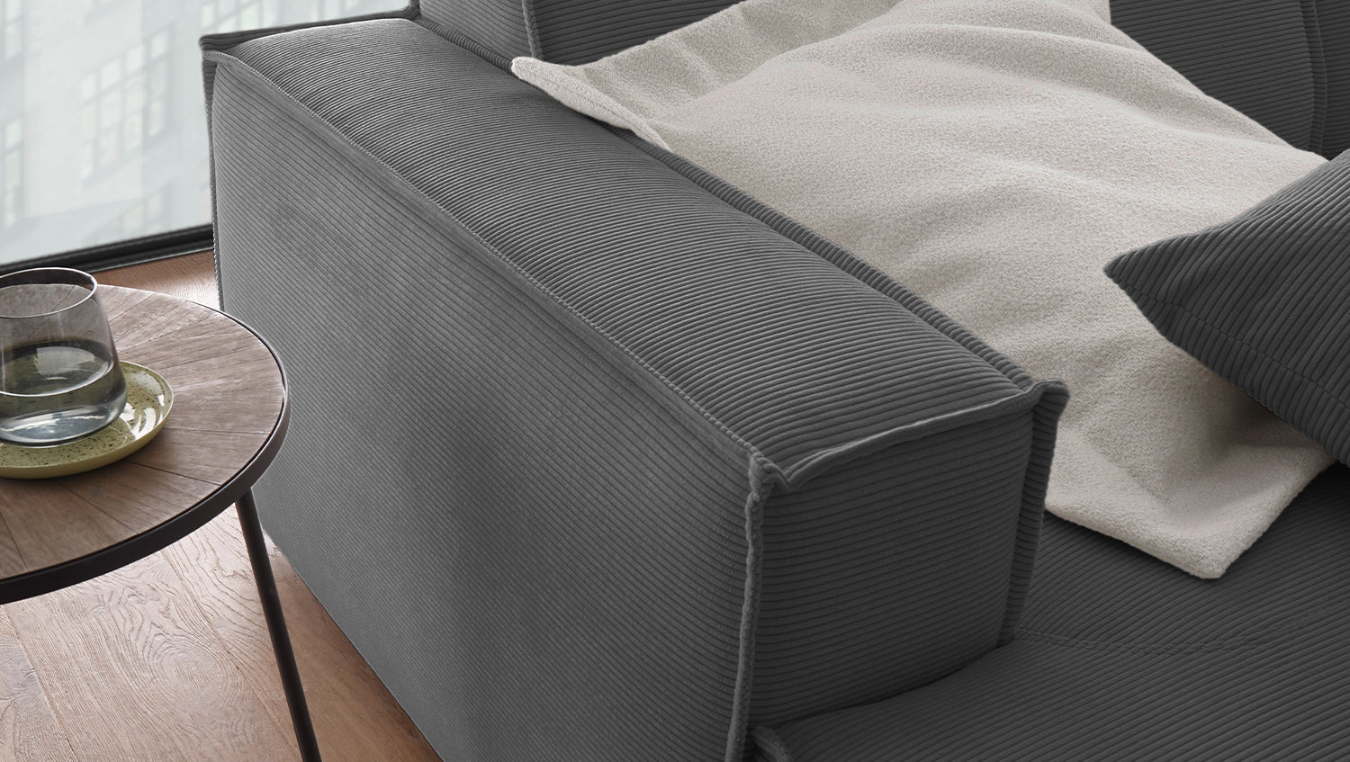 KAWOLA Sofá extra ancho SAMU pana fina antracita