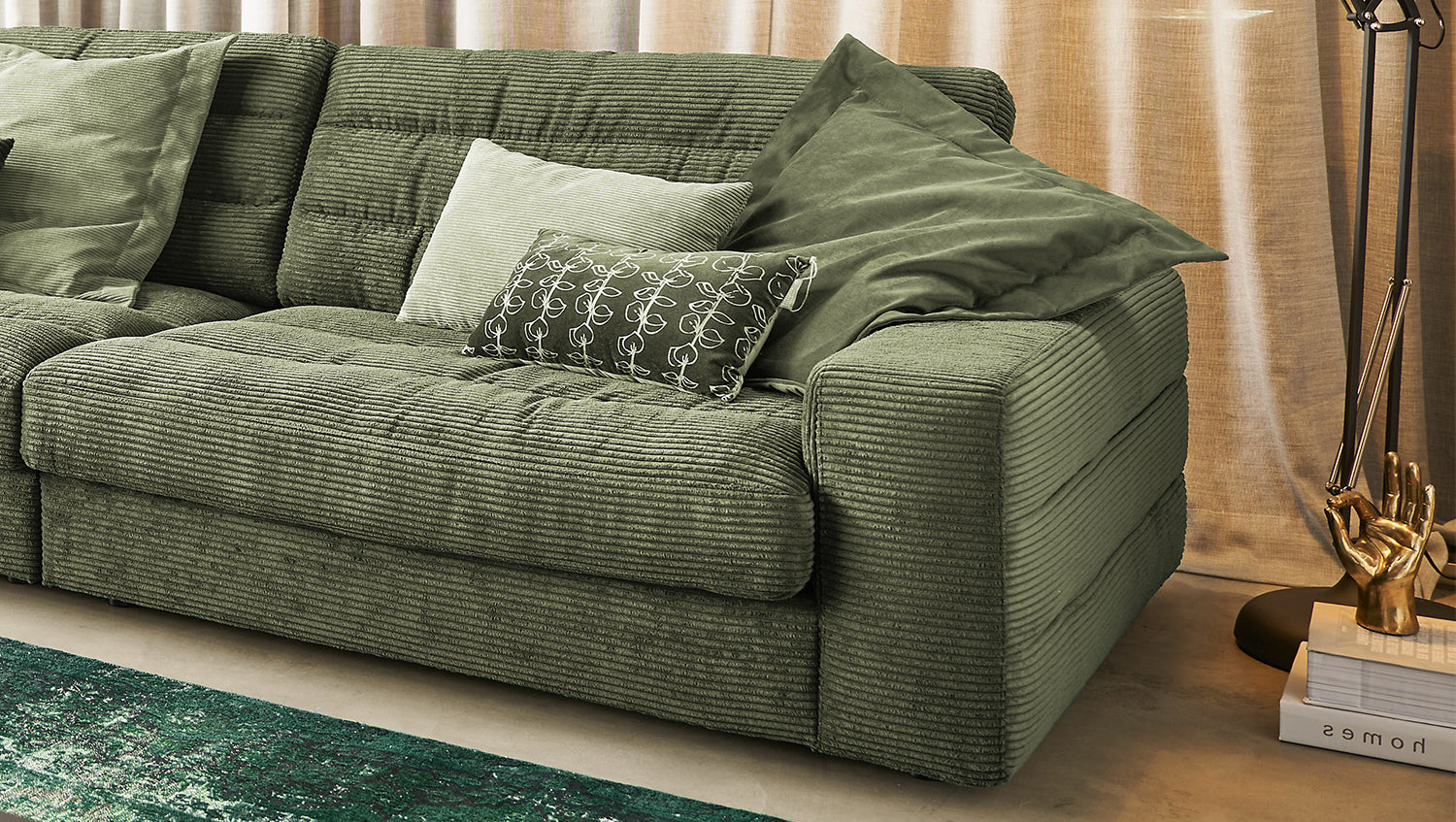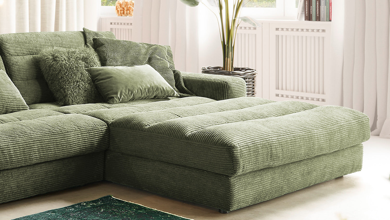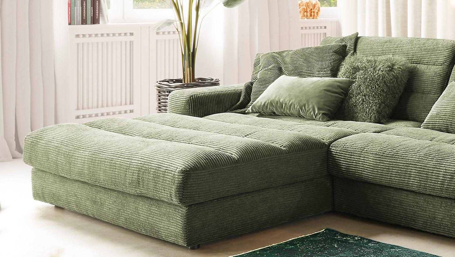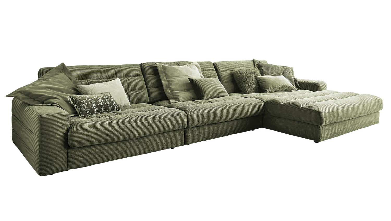 KAWOLA Sofá LANA XL Sofá esquinero Pana verde oliva