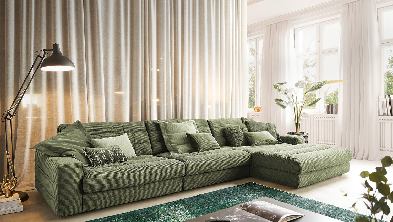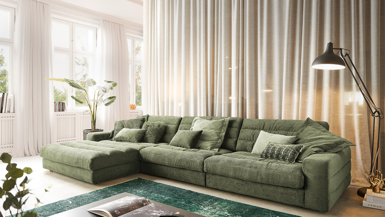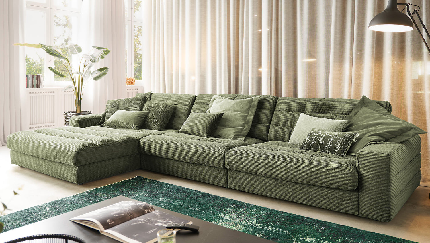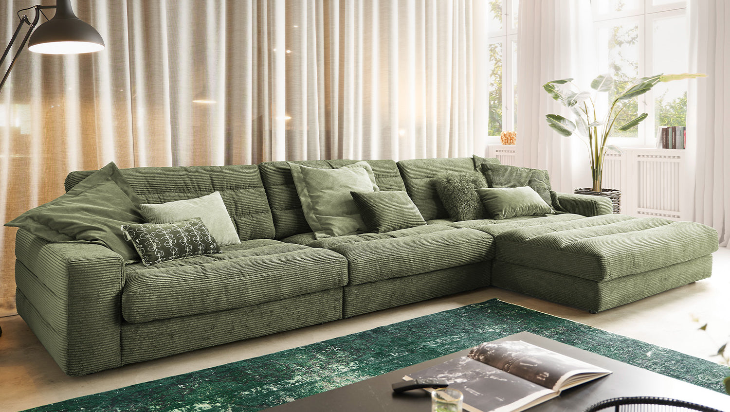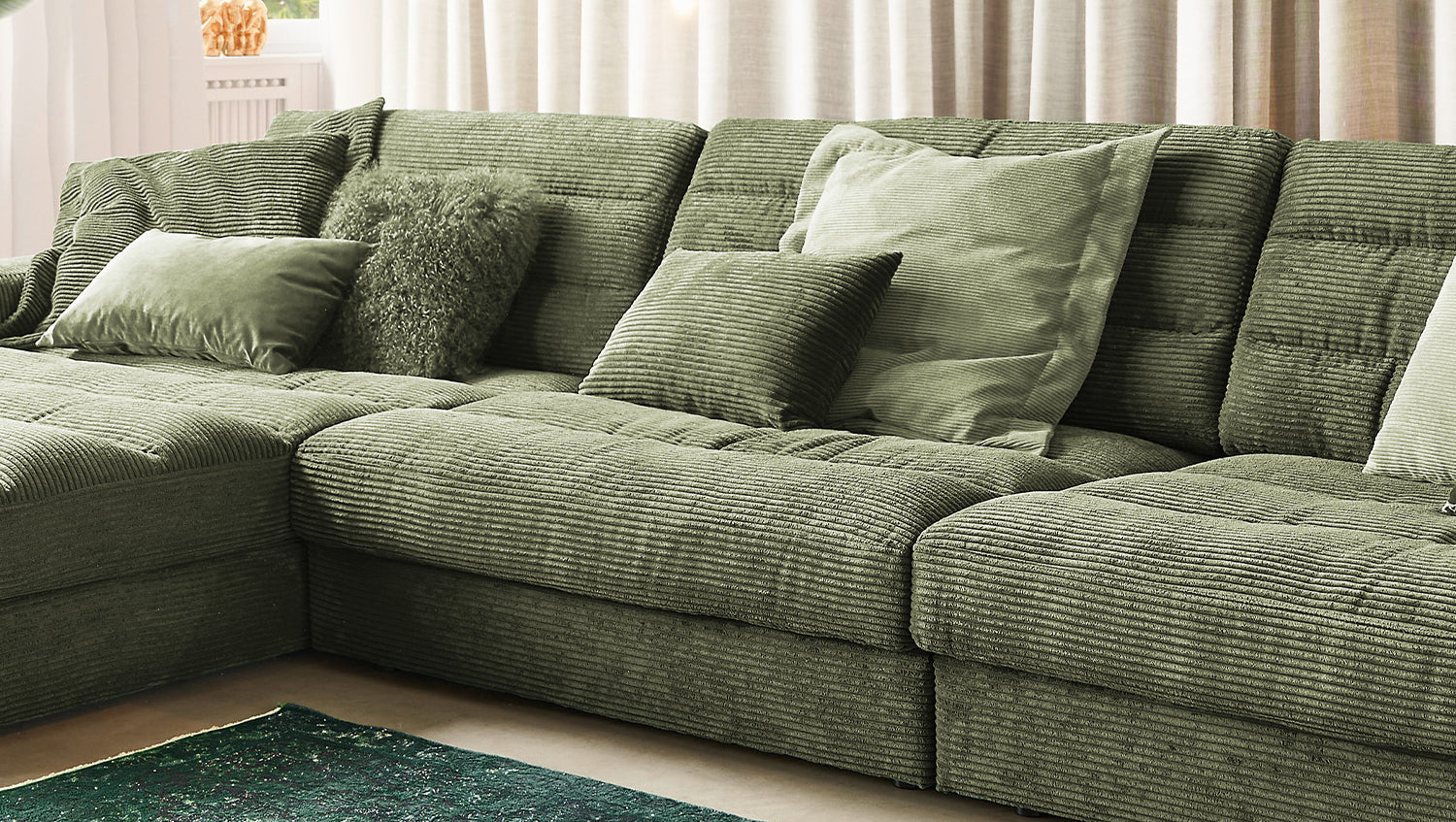 KAWOLA Sofá LANA XL Sofá esquinero Pana verde oliva