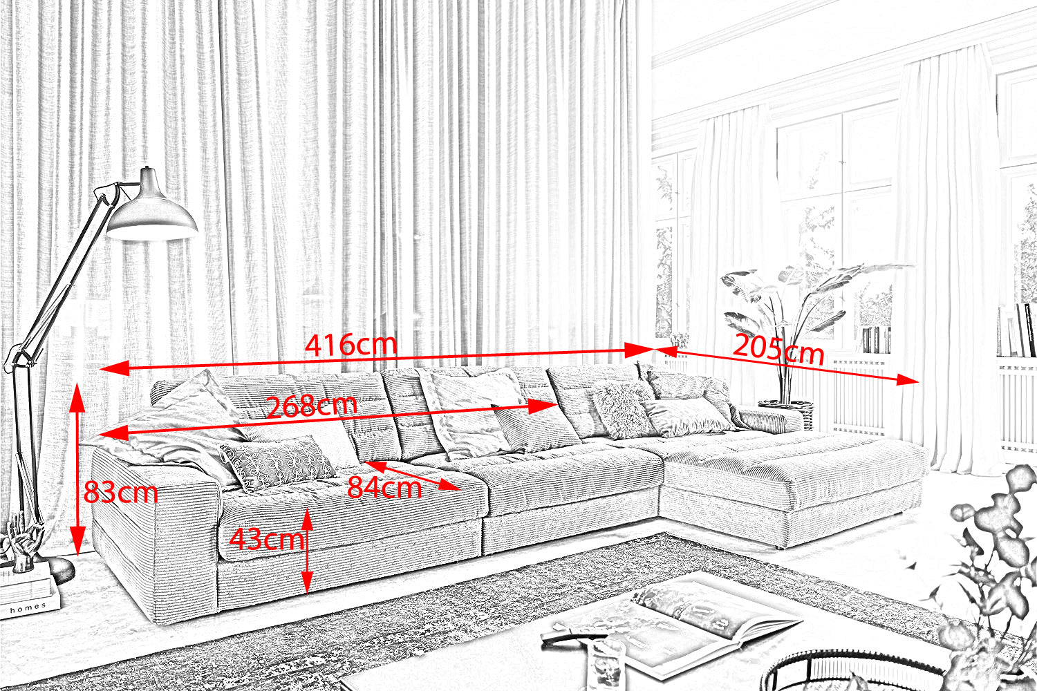 El sofá esquinero KAWOLA LANA impresiona por su estilo y elegancia. Su diseño clásico y su tapizado en la moderna tela de pana le confieren una belleza atemporal que aporta a su salón un ambiente de bienestar único. La tapicería garantiza la máxima comodidad de asiento y se adapta a la forma de su cuerpo. Las huellas del asiento y las ondulaciones de las fundas son típicas del producto. El asiento consta de una base de muelles con muelles ondulados de acero de elasticidad permanente y una funda superior, así como cojines de asiento sueltos de espuma de poliuretano. El asiento y el respaldo están tapizados con un relleno de alta calidad que contiene una mezcla de plumas. Para evitar que el material de relleno se comprima, los cojines respaldo y asiento deben sacudirse después de cada uso. Relájese en el sofá KAWOLA LANA y déjese llevar lejos de la gris vida cotidiana...