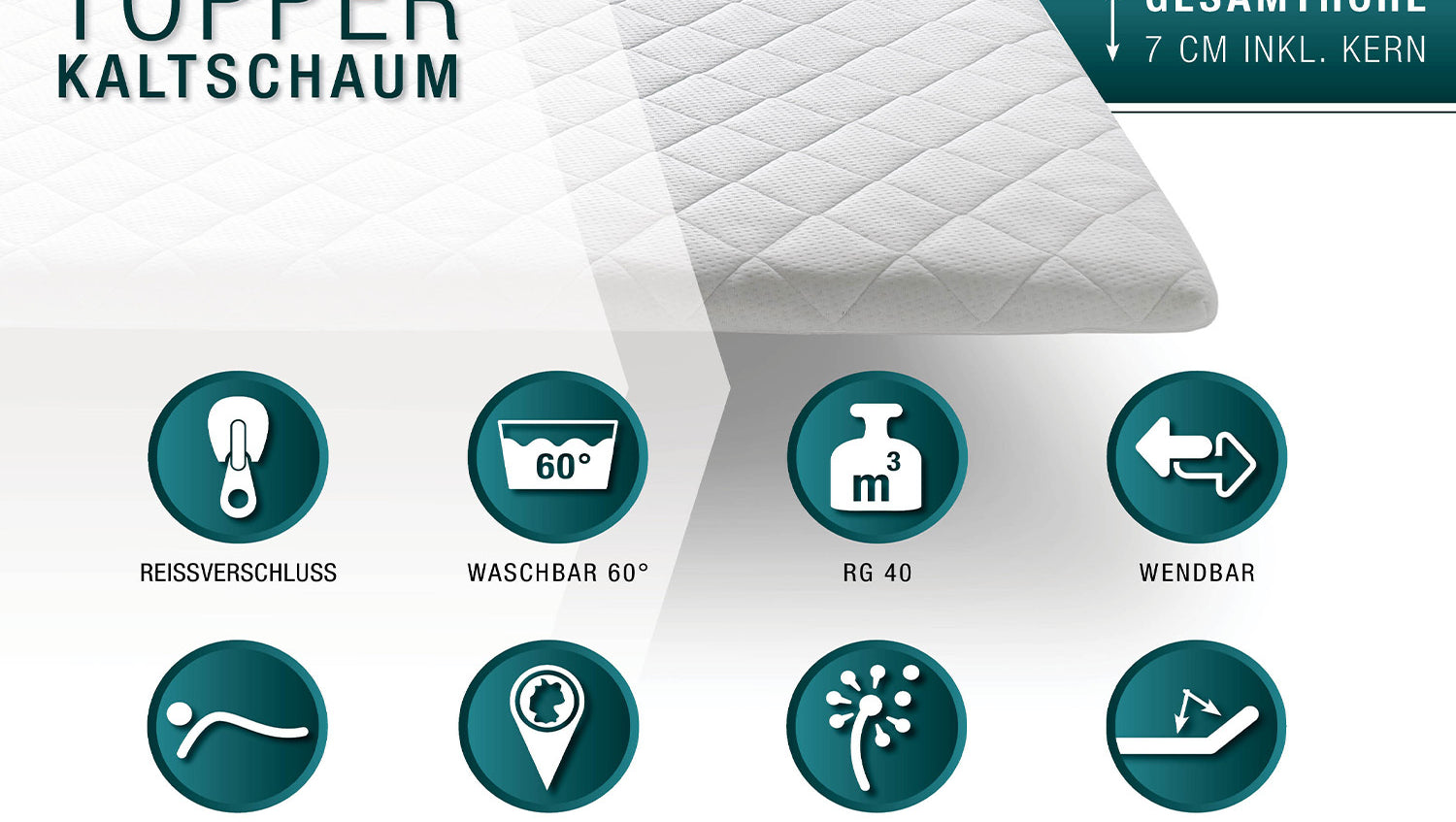 El topper Sence-ice SOLO de KAWOLA tiene un núcleo de espuma fría continua de alta calidad con una funda que regula el clima y no irrita la piel. Un lado refresca y el otro calienta. La funda, que regula la humedad y reduce la transpiración, es lavable a 60 °C y no es apta para secadora.