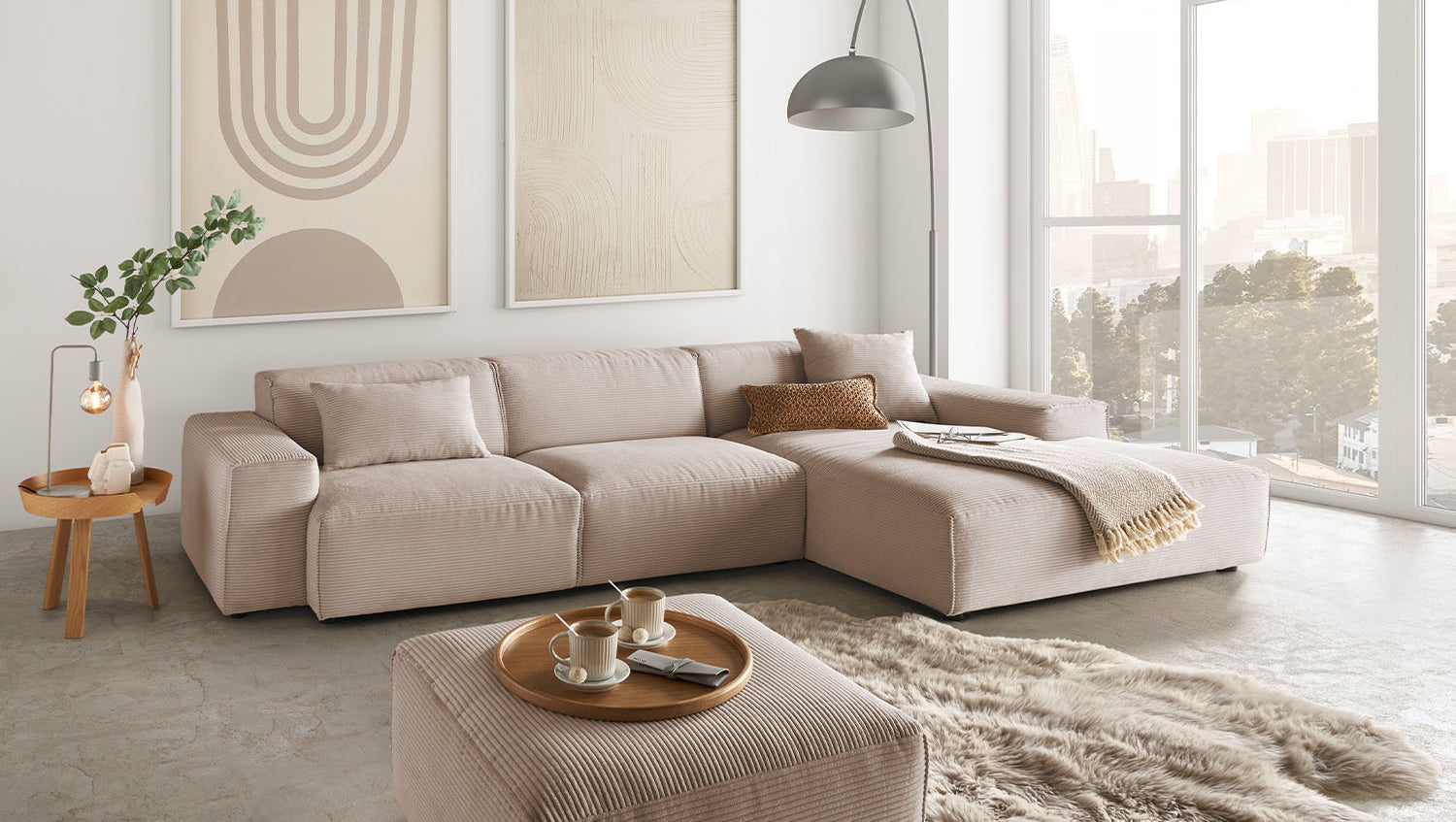 • MODERNO LOOK DE PANA - Estructura tridimensional de tacto suave, robusta y acogedora al mismo tiempo para un ambiente de vida con estilo