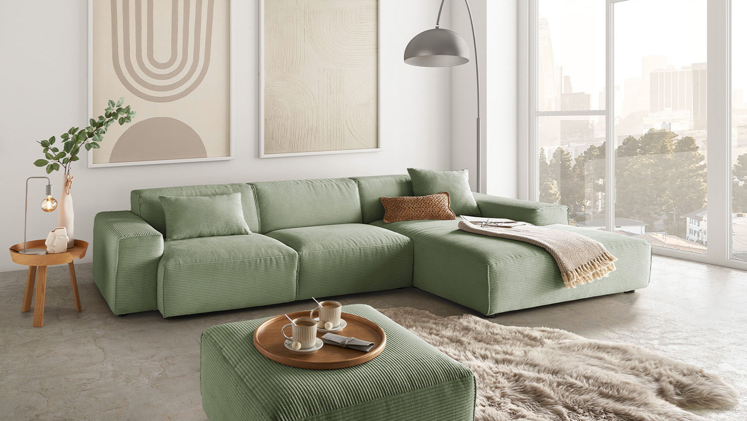 KAWOLA Sofá RANI Sofá esquinero Pana verde oliva