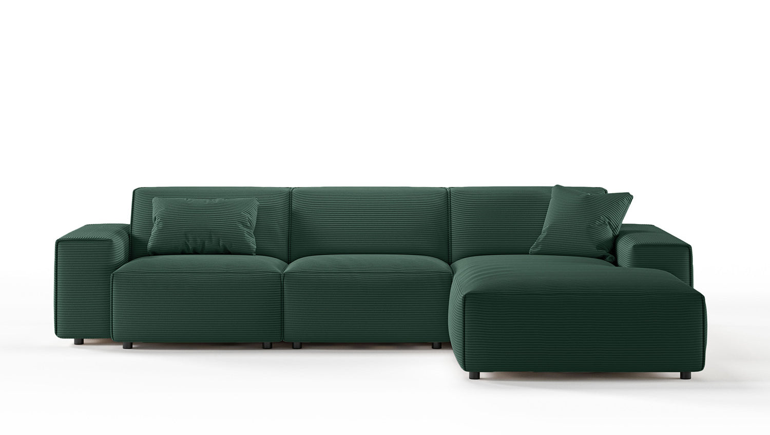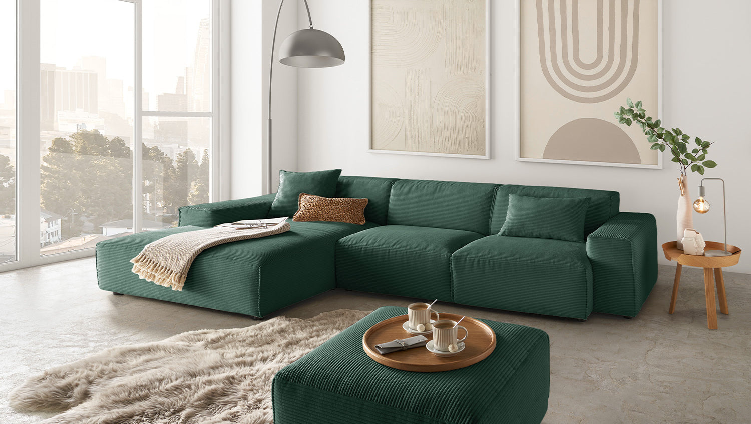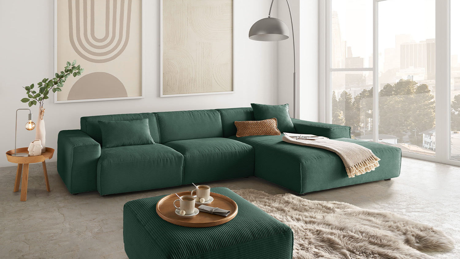 KAWOLA Sofá RANI Sofá esquinero Pana esmeralda