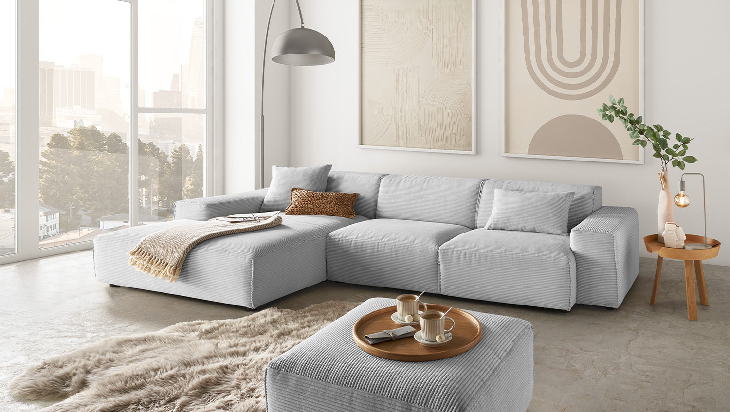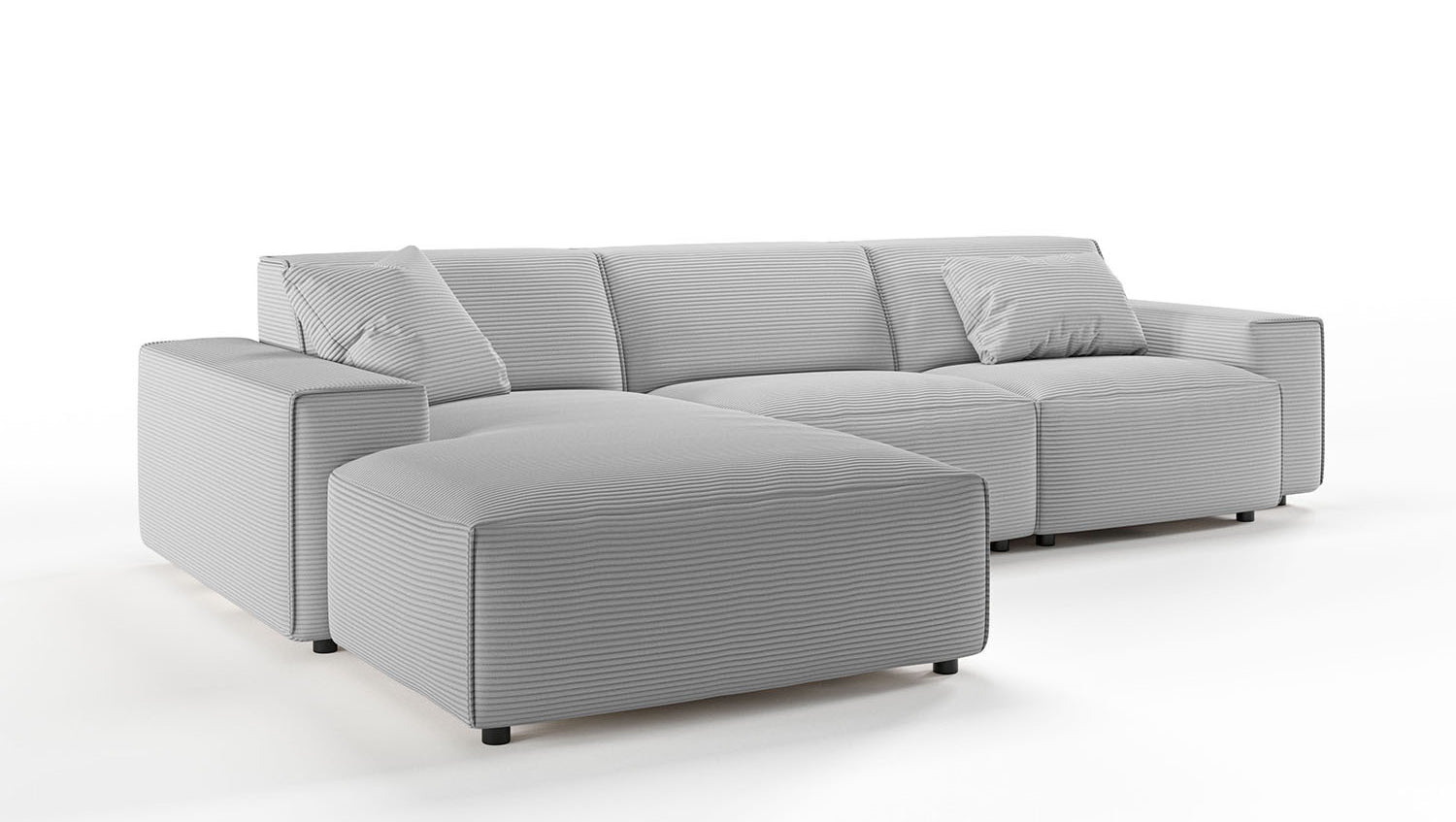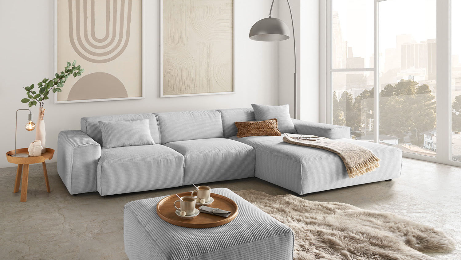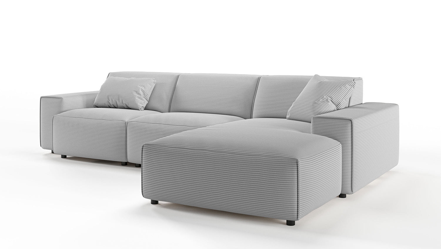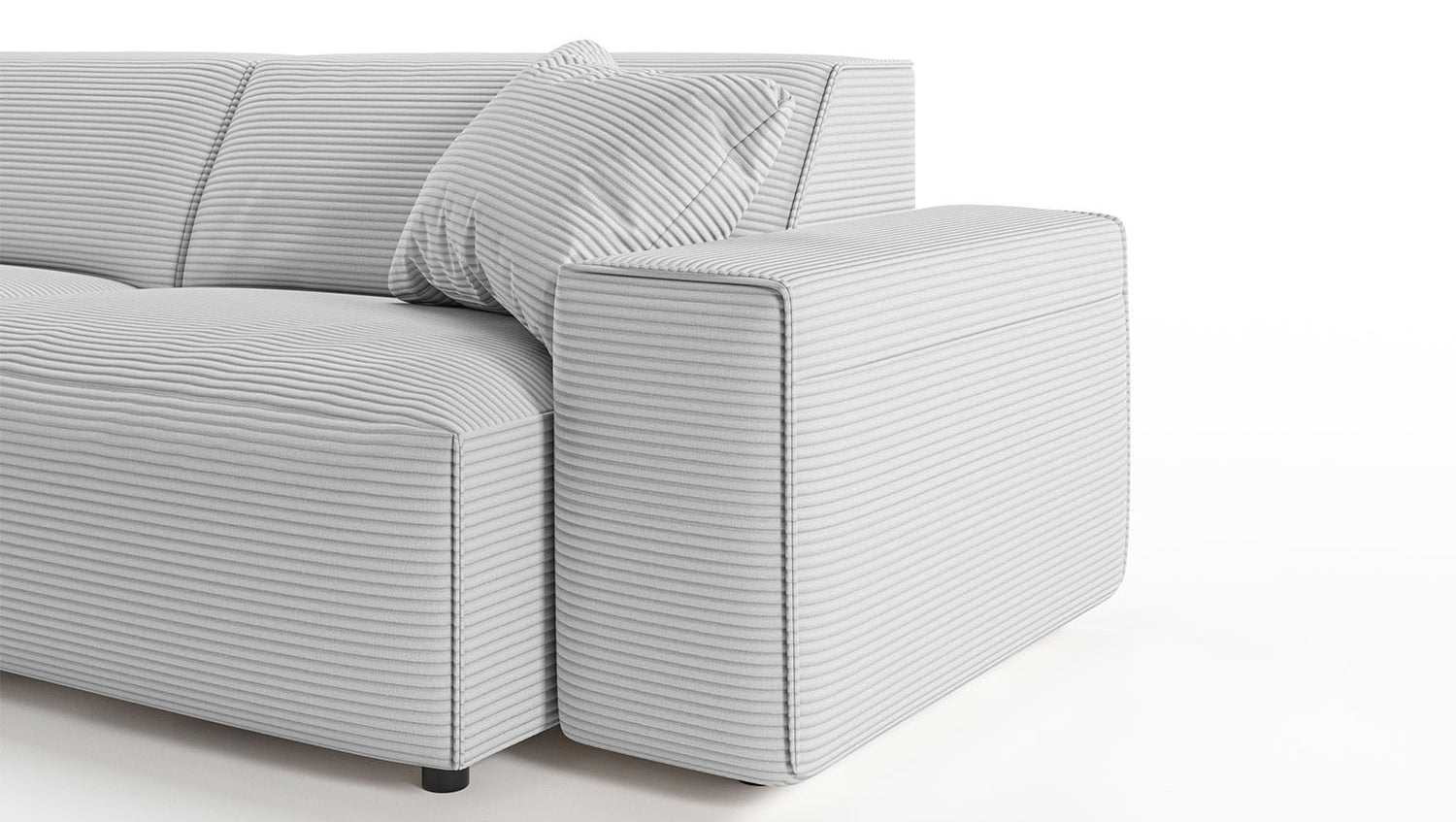 Relájate en el cómodo sofá esquinero KAWOLA RANI con su acogedora tapicería de pana. La robusta estructura de madera maciza garantiza estabilidad y durabilidad, mientras que los mullidos asientos y respaldos con acolchado de espuma fría proporcionan un confort óptimo. El revestimiento de pana de moda no sólo es muy resistente, sino que también confiere al sofá un aspecto moderno y un tacto agradable. Gracias a su diseño atemporal, el sofá se integra fácilmente en cualquier ambiente. Es la elección perfecta para cualquiera que busque un sofá elegante y cómodo para el salón. Prepárese para reclinarse en nuestro sofá esquinero RANI y disfrutar de la vida! Instrucciones de cuidado Pana: Debe aspirar el sofá con regularidad, preferiblemente con un accesorio de cepillo suave. Utilice un producto de limpieza suave y un paño húmedo para eliminar las manchas. Utilice muy poca agua al limpiar y deje que la funda se seque completamente antes de usarla. Evite la luz solar directa para evitar que se decolore.