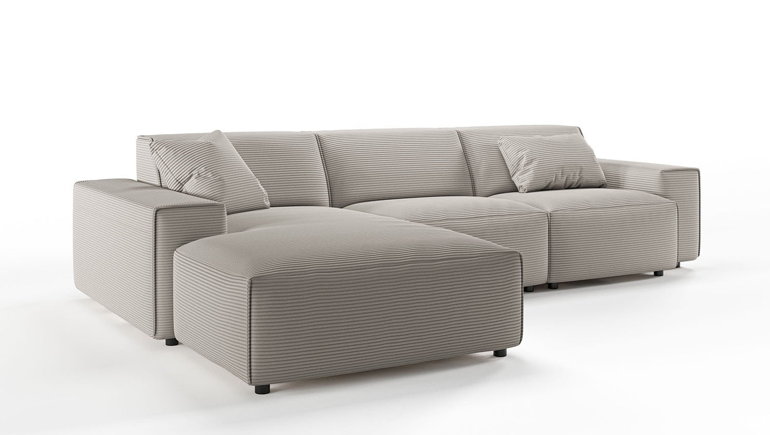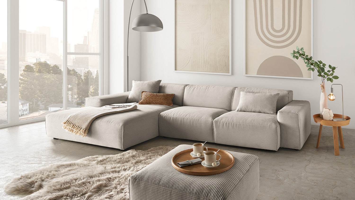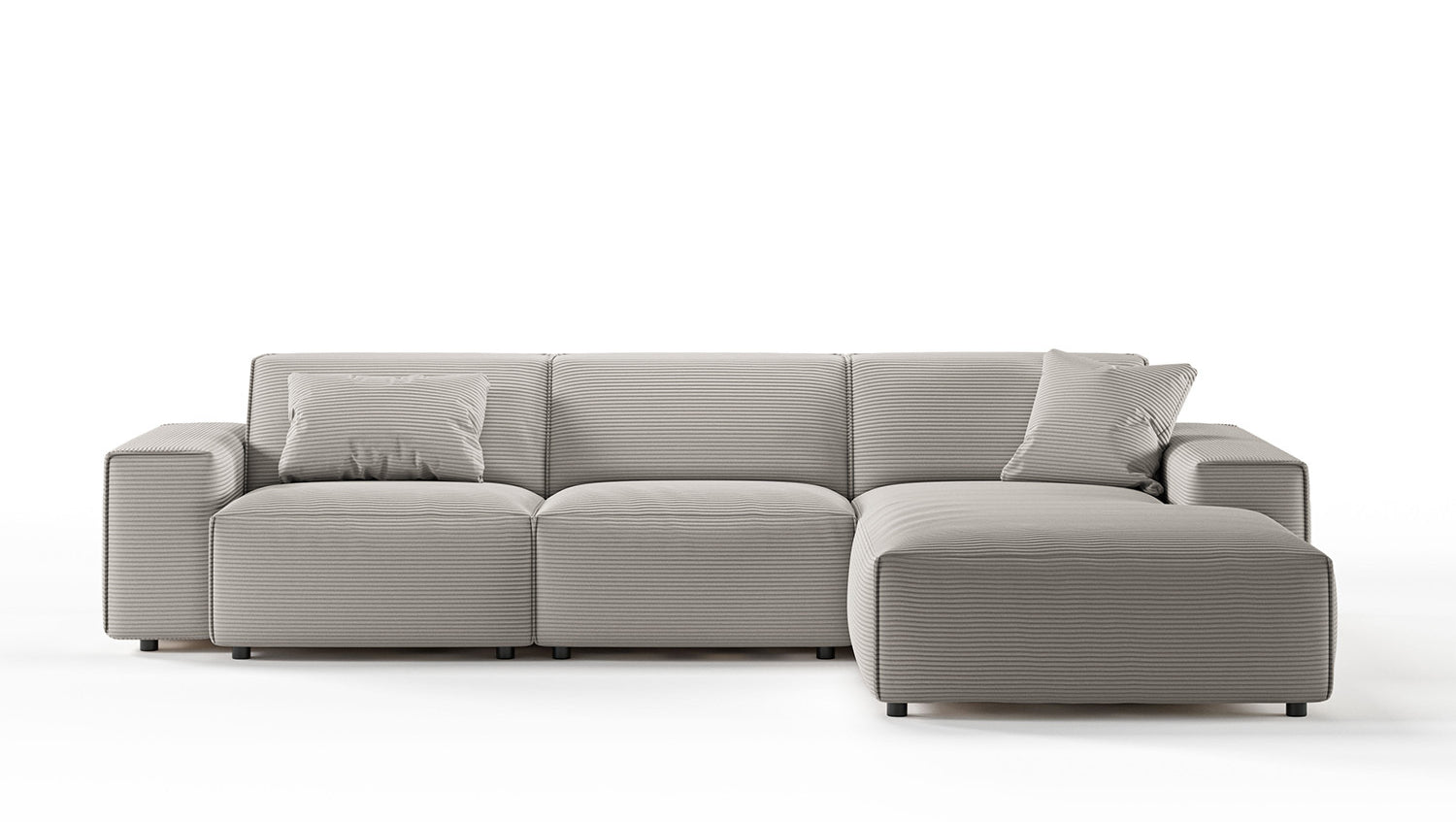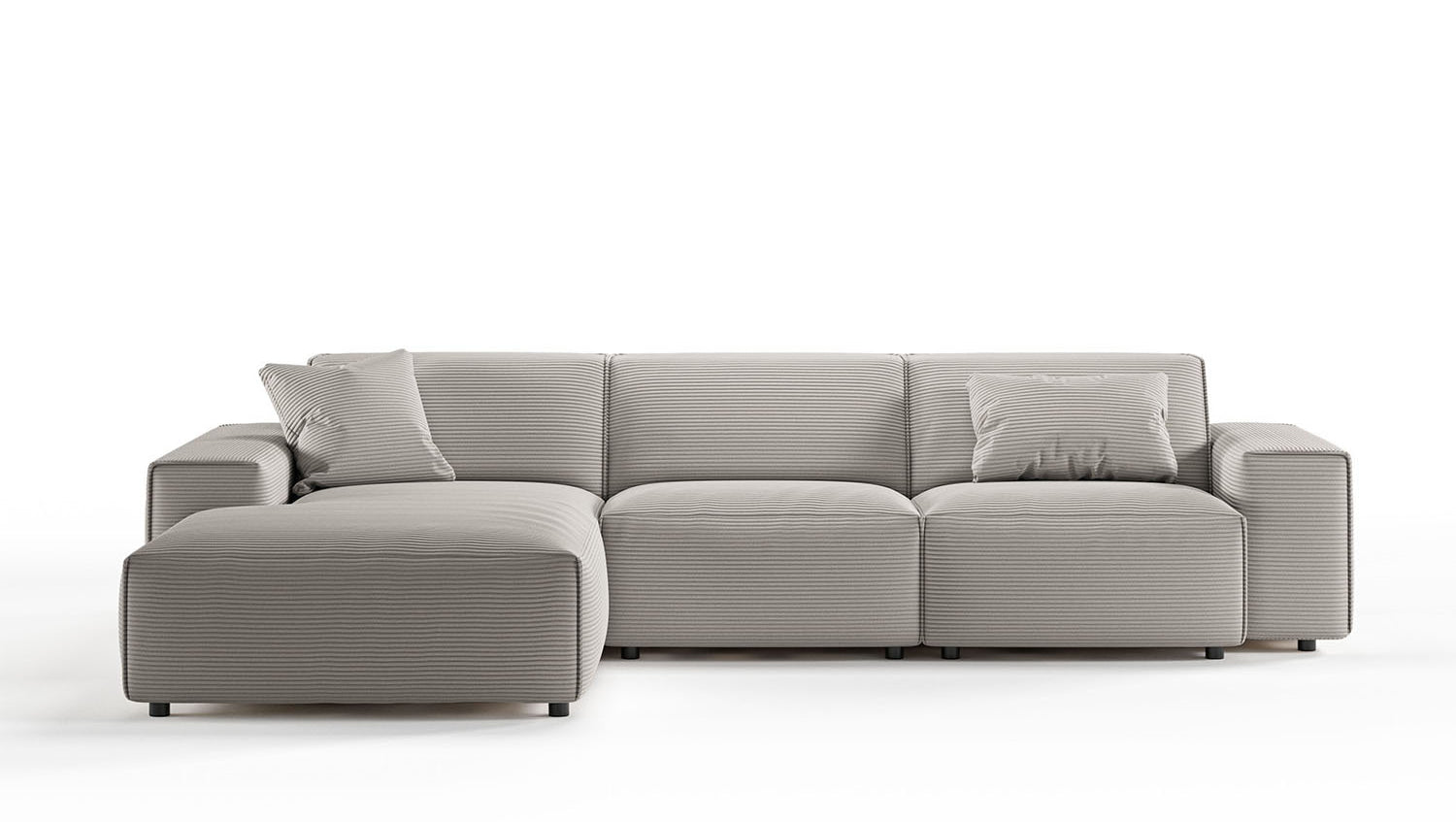 Relájate en el cómodo sofá esquinero KAWOLA RANI con su acogedora tapicería de pana. La robusta estructura de madera maciza garantiza estabilidad y durabilidad, mientras que los mullidos asientos y respaldos con acolchado de espuma fría proporcionan un confort óptimo. El revestimiento de pana de moda no sólo es muy resistente, sino que también confiere al sofá un aspecto moderno y un tacto agradable. Gracias a su diseño atemporal, el sofá se integra fácilmente en cualquier ambiente. Es la elección perfecta para cualquiera que busque un sofá elegante y cómodo para el salón. Prepárese para reclinarse en nuestro sofá esquinero RANI y disfrutar de la vida! Instrucciones de cuidado Pana: Debe aspirar el sofá con regularidad, preferiblemente con un accesorio de cepillo suave. Utilice un producto de limpieza suave y un paño húmedo para eliminar las manchas. Utilice muy poca agua al limpiar y deje que la funda se seque completamente antes de usarla. Evite la luz solar directa para evitar que se decolore.