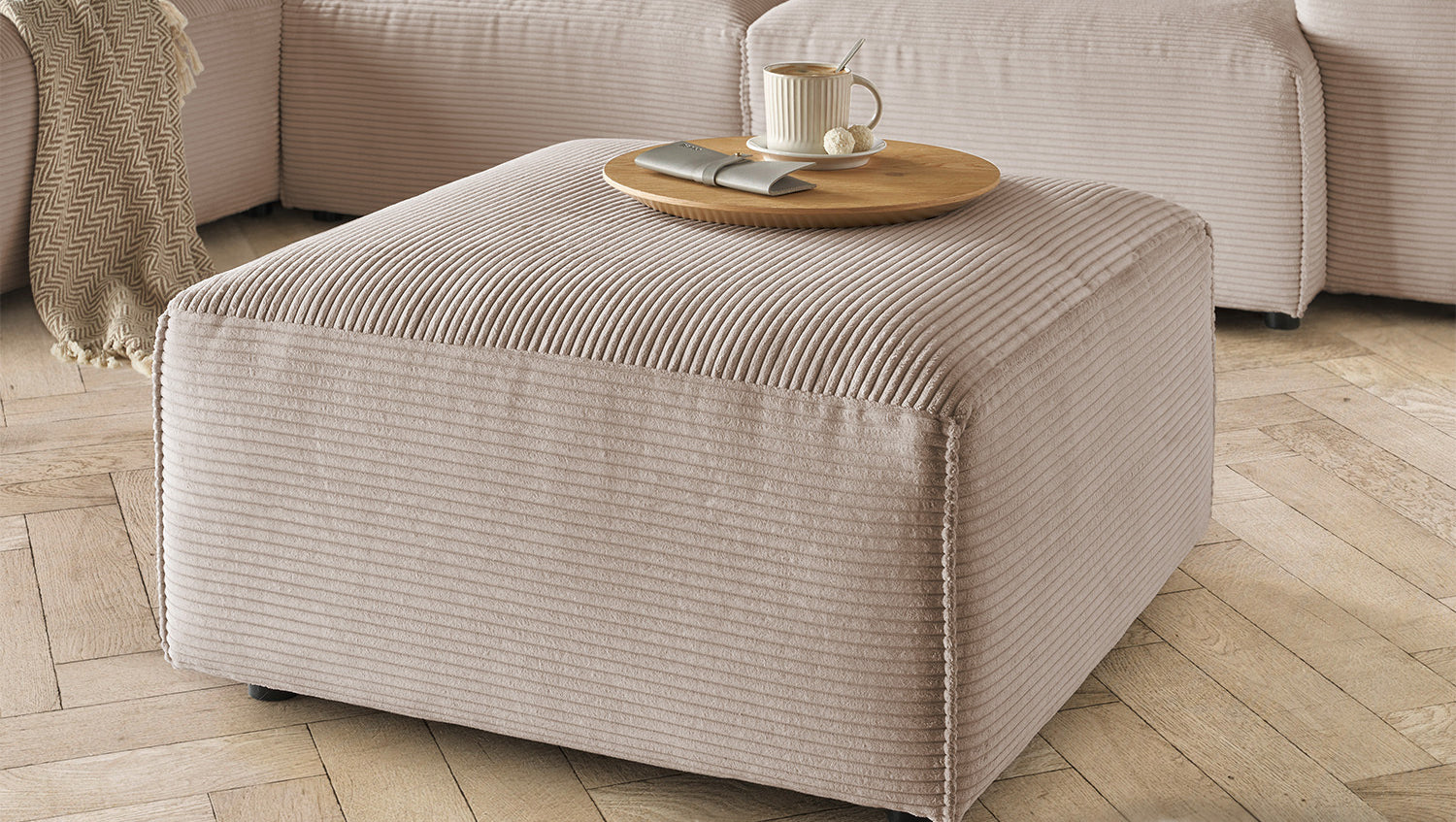 KAWOLA taburete RANI taburete tapizado cord taupe
