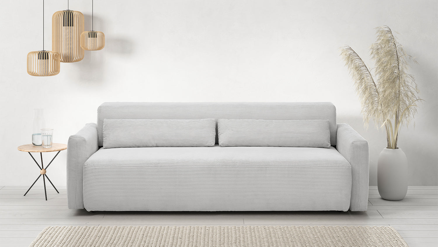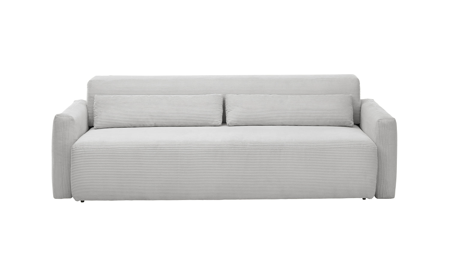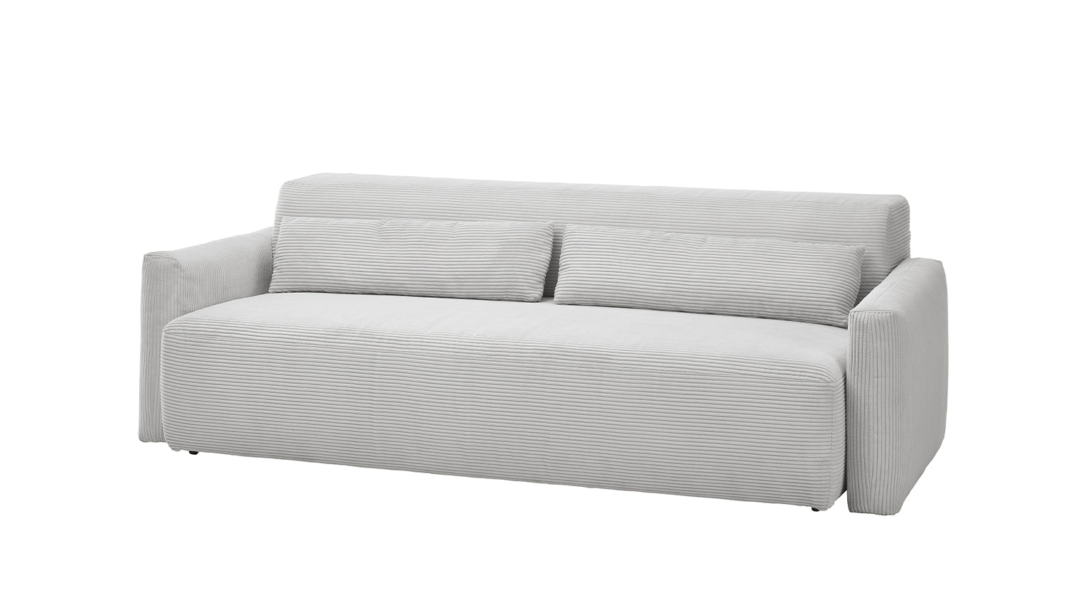 El sofá cama NEO de KAWOLA combina elegancia, funcionalidad y comodidad en un diseño atemporal con tapicería de pana de alta calidad. Con una profundidad de asiento ajustable manualmente y unas generosas dimensiones de 233 cm de ancho y 208 cm de fondo, ofrece espacio para hasta 3 personas. La función para dormir lo transforma rápidamente en una cómoda cama con una profundidad de 205 cm. El asiento de firmeza media y el confort reclinable con suspensión de muelles ondulados y núcleo de muelles ensacados en barril proporcionan un apoyo y un confort ideales. El tapizado de espuma PUR de alta calidad invita a relajarse. Ya sea como sofá o como cama, el sofá cama NEO impresiona por su excepcional comodidad y su cálida superficie de pana. Experimente la versatilidad de este mueble, adquiera ahora el sofá cama NEO de KAWOLA para disfrutar de horas de relax y un sueño reparador.
