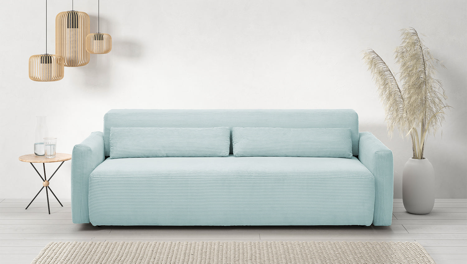 KAWOLA Sofa NEO Sofa cama Pana azul claro
