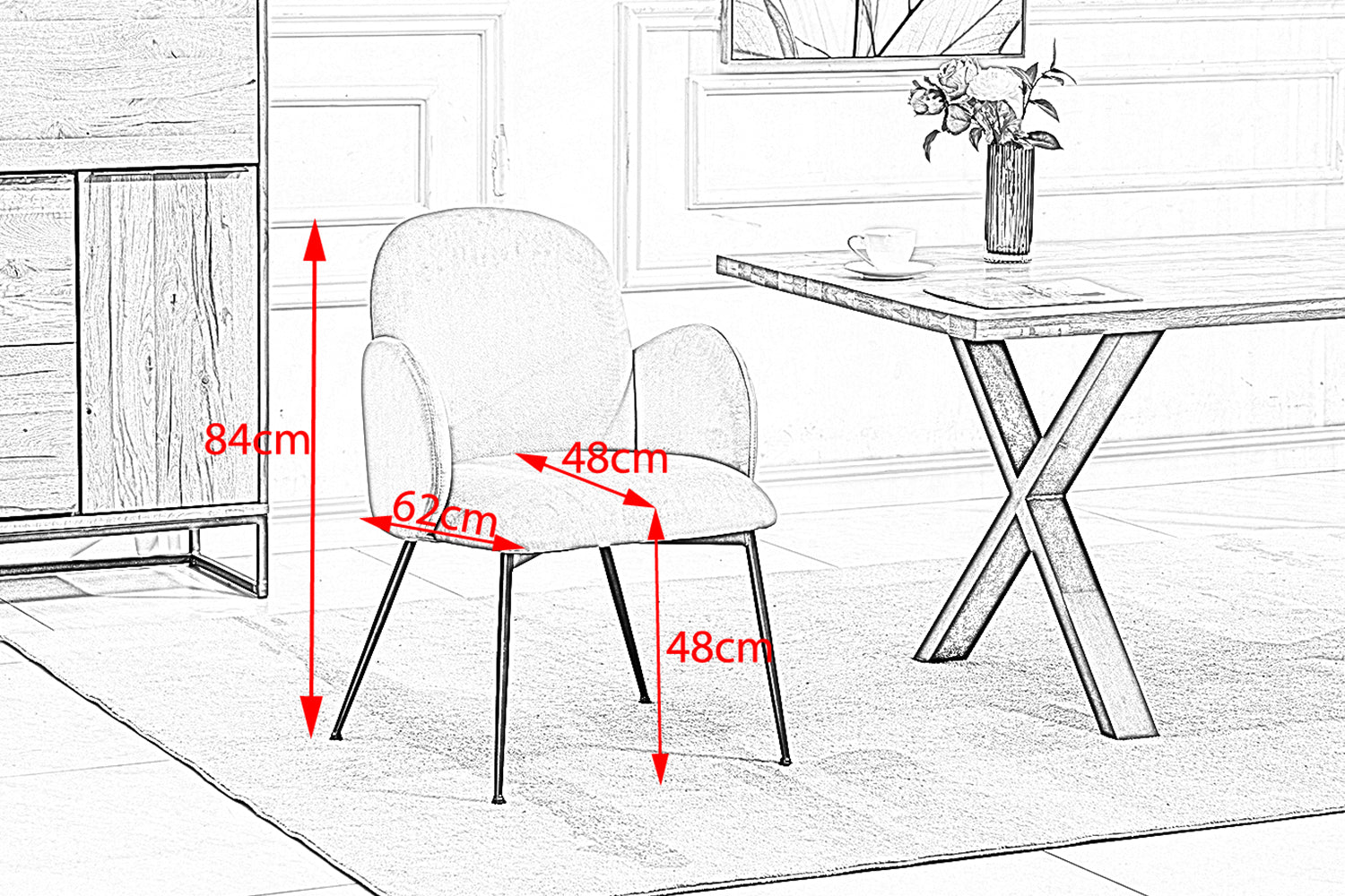 Esta silla es 2a oportunidad de una devolución de un cliente, que tiene ciertos defectos de menor importancia y por lo tanto es ofrecido por nosotros a un precio reducido. Los posibles defectos son: Arañazos en el armazón, marcas de presión, ligera suciedad y desviaciones de color en la tapicería, así como desgarros en la tela de los bajos. Por favor, eche un vistazo a las fotos de defectos directamente después de la foto principal. Sólo sirven para ilustrar posibles defectos. Se trata de imágenes de ejemplo generales y no representan el artículo en cuestión. El artículo no presenta necesariamente todos los defectos indicados. Las telas y colores de tapicería que aparecen en las imágenes de defectos tampoco se refieren a este artículo. La silla de comedor DEON de KAWOLA combina un diseño atemporal con un confort insuperable, convirtiéndola en la pieza central de su comedor. La funda de tela de terciopelo de alta calidad confiere a la silla un atractivo especial. Sus generosas dimensiones (59 cm de ancho, 62 cm de fondo, 84 cm de alto) permiten una integración perfecta en habitaciones de distintos tamaños. La altura ergonómica del asiento de 48 cm y la generosa profundidad del asiento de 48 cm prometen horas de comodidad. Además de su atractivo diseño, la silla de comedor DEON ofrece una comodidad de asiento excepcional. Las líneas curvas y los reposabrazos acolchados favorecen la postura e invitan a disfrutar de largas comidas y animadas conversaciones. Las patas de acero con recubrimiento de polvo negro garantizan la estabilidad y confieren a la silla una estética moderna. Elija la silla de comedor DEON de KAWOLA y experimente una elegancia atemporal y un confort inigualable. Embellezca su comedor y regálese el lujo que se merece.