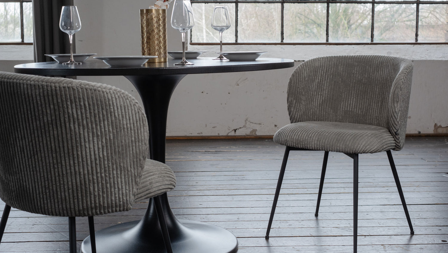 Silla de comedor KAWOLA LENA Pana gris
